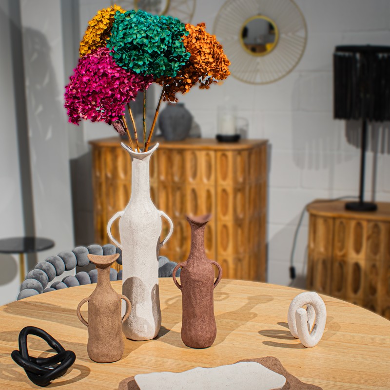 Jarrón C y Asas Aluminio 25Cm Beige