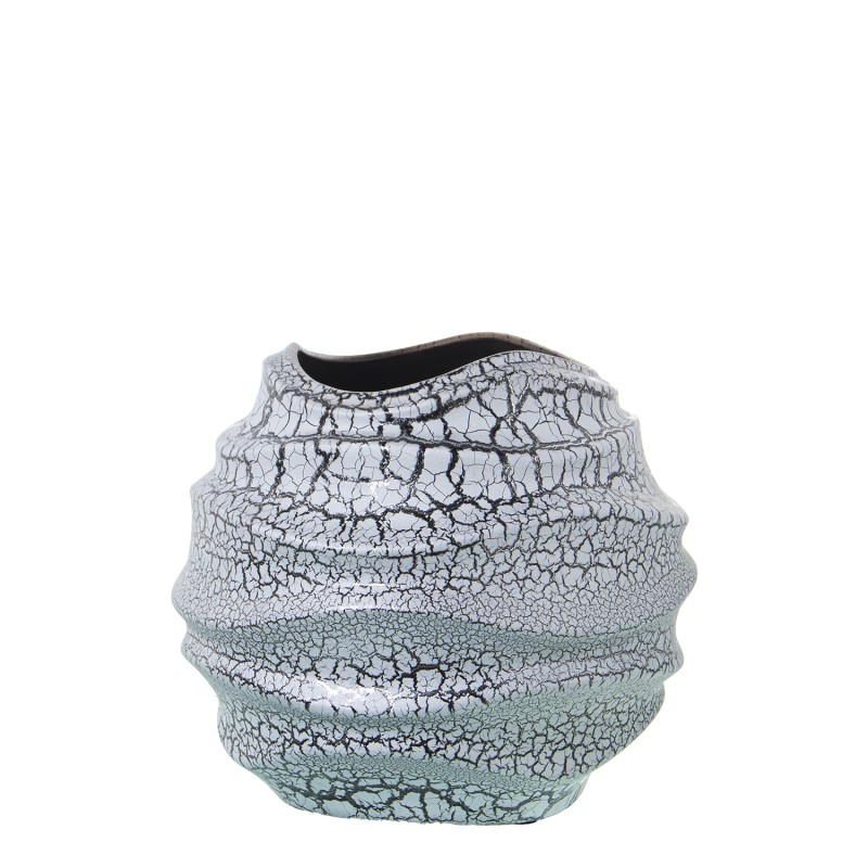 Jarrón Cerámica 23Cm Gris Craquelado y Plata