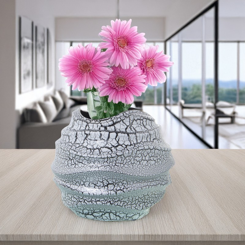 Detalles: Jarrón Cerámica 23Cm Gris Craquelado y Plata | Categoría: Decoracion Ceramica | Ref.: 60938