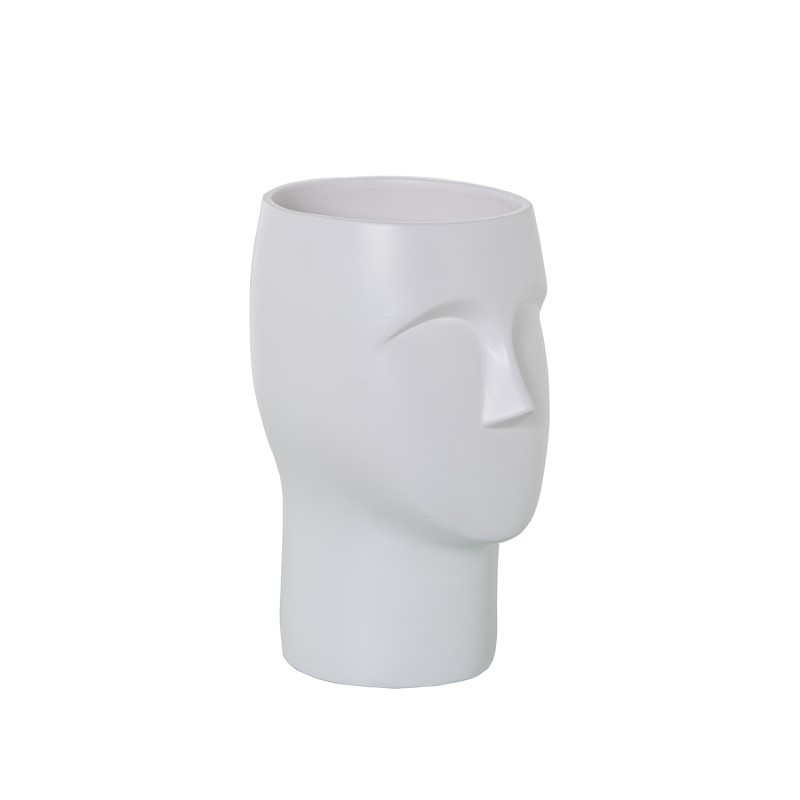 Jarrón Cerámica 24Cm Rostro Blanco Mate