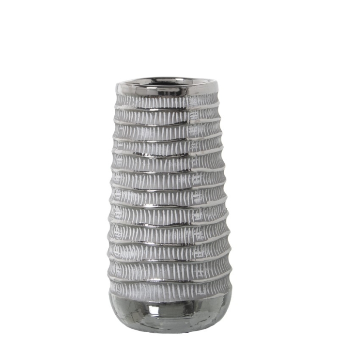 Jarrón Cerámica Plateado y Blanco