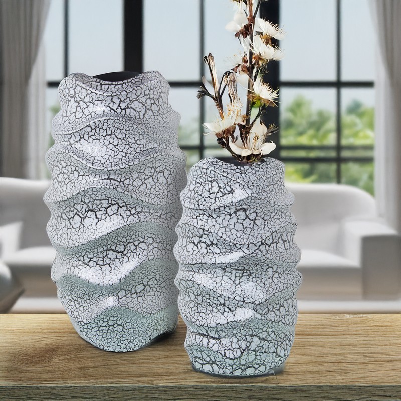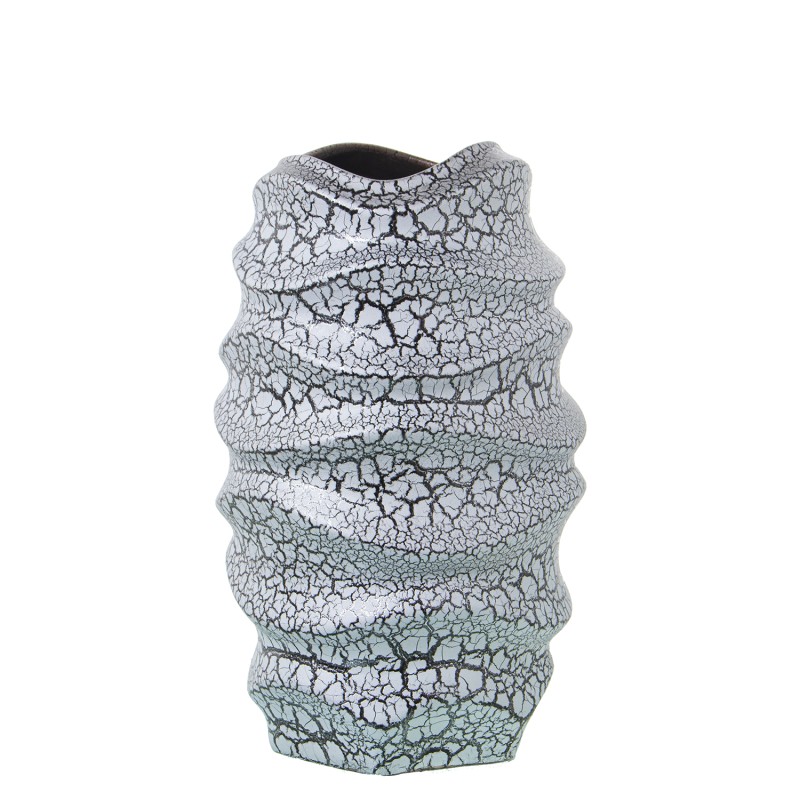 Jarrón Cerámica 33Cm Gris Craquelado y Plata