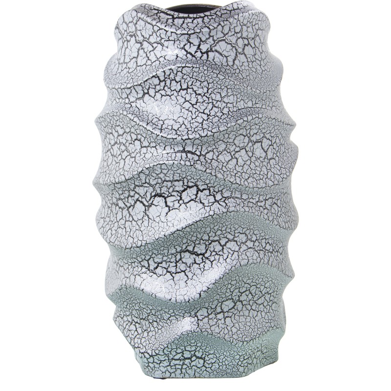 Jarrón Cerámica 40Cm Gris Craquelado y Plata