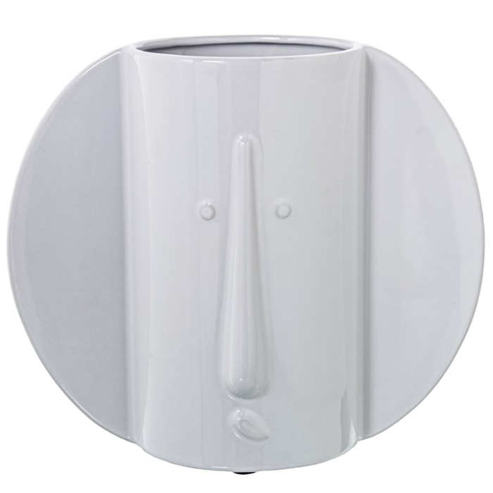 Jarron Ceramica 49Cm C y Asas Blanco Brillo