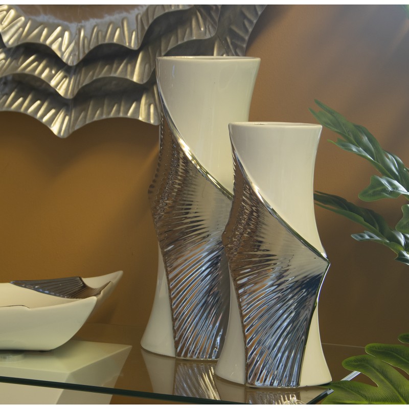 Detalles: Jarrón Cerámica Blanco y Plateado | Categoría: Decoracion Ceramica | Ref.: 53794