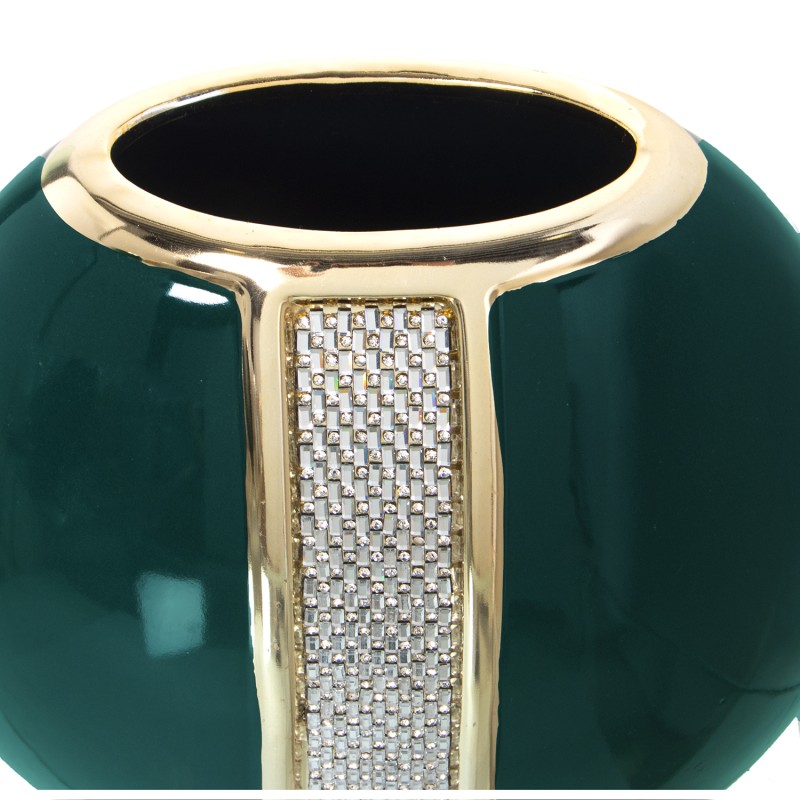 Detalles: Jarrón Cerámica Verde y Oro C y Brillos Plata | Categoría: Decoracion Ceramica | Ref.: 52810