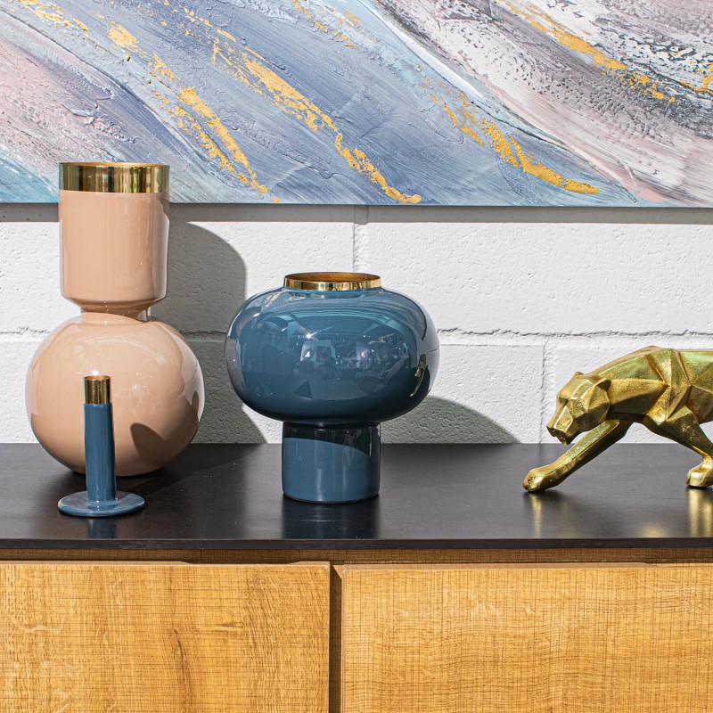 Detalles: Jarrón Metal Esmaltado Azul y Dorado | Categoría: Decoracion Metal | Ref.: 67822