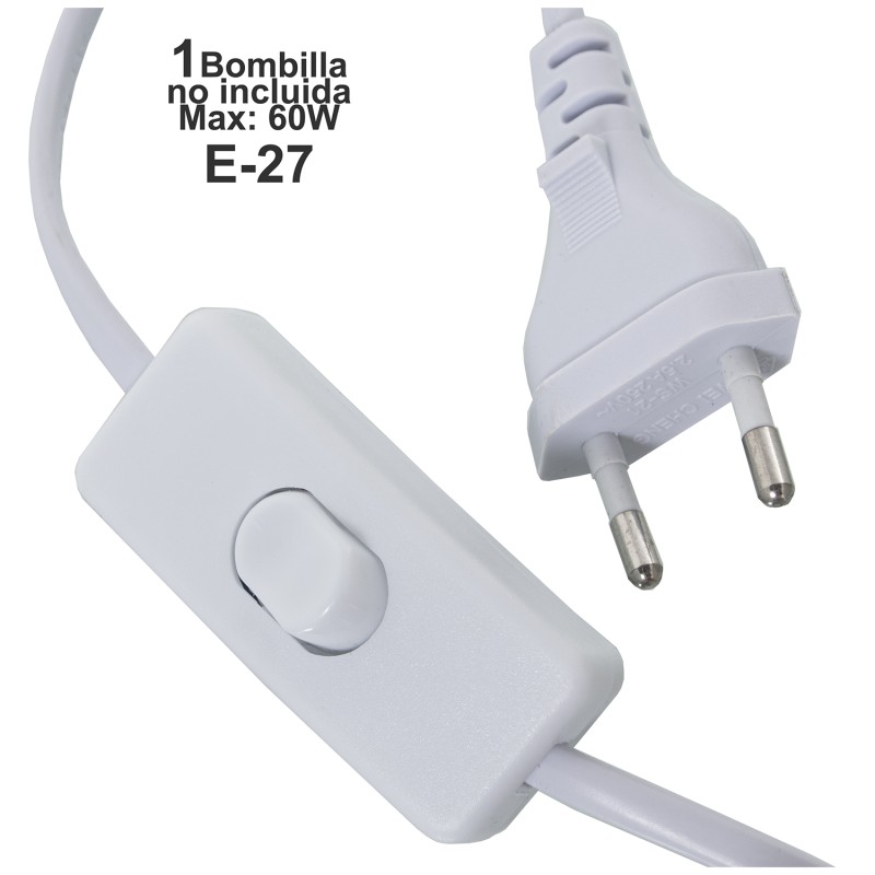 Lámpara Techo Metal Blanco 1Xe27 Max 60W y No Incluida y Cable Blanco 75Cm