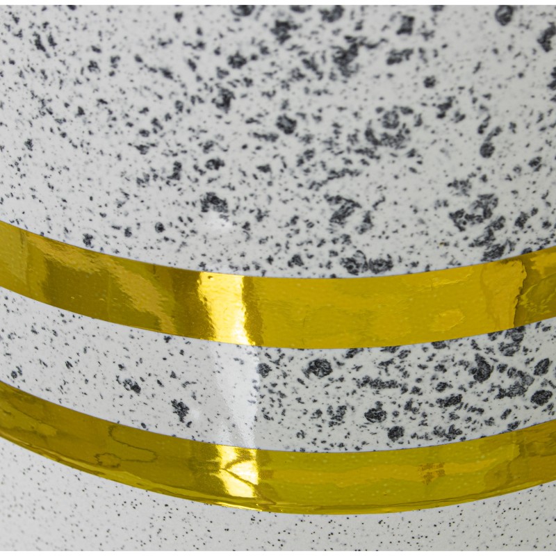 Jarrón Ceramica Plateado y Blanco C y Franjas Oro