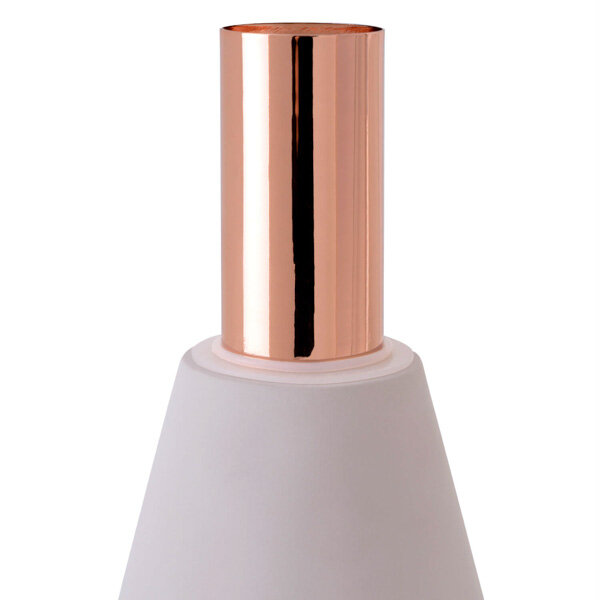La lámpara de sobremesa AINA combina materiales y formas con un equilibrio perfecto entre lo orgánico y lo sofisticado. Su base de cemento aporta una presencia sólida y natural, mientras que la pantalla de vidrio translúcido suaviza la luz y añade ligereza visual al conjunto. El detalle más llamativo es su elemento central en cobre metálico, que actúa como nexo entre los dos materiales, aportando un toque cálido y elegante que realza el diseño. Ideal para interiores contemporáneos, nórdicos o con toques industriales, la AINA es una pieza decorativa que no solo ilumina, sino que eleva el estilo del espacio con su contraste de texturas y su presencia serena. Tipo bombilla: 220/240 E27. Potencia máxima: 40W (bombilla no suministrada).