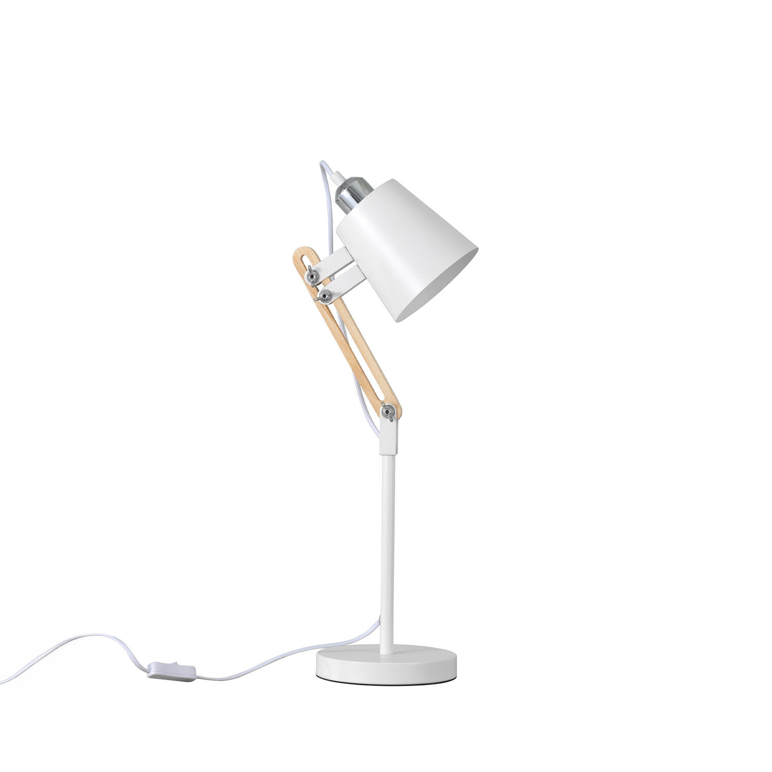 La lámpara de sobremesa ANTIA combina diseño funcional y estilo contemporáneo en una pieza compacta y versátil. Fabricada en metal blanco con un elegante detalle en madera natural, destaca por su estética sobria con un toque cálido y moderno. Su punto fuerte es la pantalla orientable, que permite dirigir la luz con precisión, ideal para crear un foco puntual en zonas de lectura, trabajo o estudio. ANTIA no solo decora, sino que mejora la funcionalidad del espacio, adaptándose a tus necesidades con estilo y practicidad. Tipo bombilla: 220/240 E27. Potencia máxima: 40W (bombilla no suministrada).
