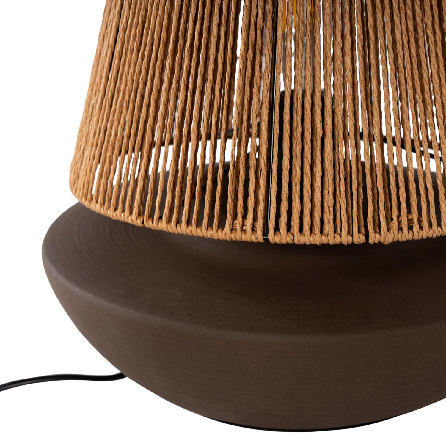 Detalles: Características : Ancho total: ø 35 cm Alto: 45 cm Fondo: ø 35 cm Altura pantalla: 34 cm Anchura pantalla: ø 18 cm / ø 35 cm Medida base: 11 cm Medida cable: 170 cm Peso producto: 4,70 kg Advertencia tolerancia: +/- 1 cm | CARACTERÍSTICAS: Estructura: CUERDA DE CÁÑAMO/CERÁMICA Tipo bombilla: 220/240 E27 MAX:40W (NO INCLUIDA) Código del producto: 00LP306001 Las imágenes y/o colores de los productos pueden variar ligeramente por motivos de calibrado de pantalla, luz ambiente de la fotografía, ángulo de la misma, remesa producción madera, textil, etc. | MANTENIMIENTO: Recomendaciones: No colocar cerca de fuentes de calor o luz solar. Es recomendable quitar el polvo de los tapizados. Los elementos afilados o metálicos pueden rayar la superficie o producir desgarros. Uso y mantenimiento: Limpiar con paño ligeramente humedecido en agua y jabón neutro con movimientos en círculo. Frotar suavemente. Secar con paño seco. No utilizar productos abrasivos o químicos (lejías, acetonas, disolventes, etc.). Se puede utilizar ligeramente agua y jabón neutro para superficie | PAQUETES: Nº paquetes: 1 Artículos por paquetes: 1 Dimensión paquete: 40 x 41 x 50 cm Peso paquete: 5 kg Manipulación: 1 persona