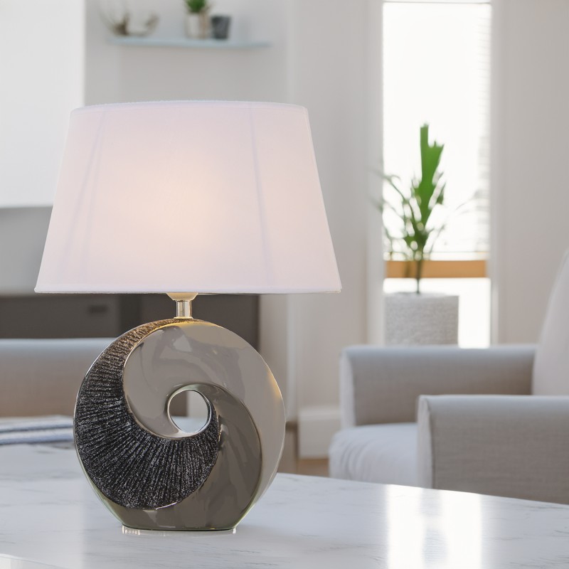 Detalles: Lámpara Sobremesa Cerámica Gris y Plata y 1Xe27 y Max.40W N y Base: y | Categoría: Iluminación | Ref.: 39911