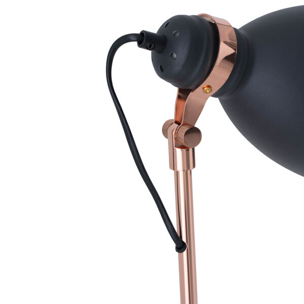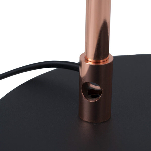 La lámpara de suelo BLASCA combina elegancia y funcionalidad en un diseño de inspiración industrial. Fabricada en metal negro, su pantalla con interior blanco crea un contraste visual que no solo resalta su estética, sino que potencia la reflexión de la luz, ofreciendo una iluminación más clara y eficiente. Los detalles en cobre metálico añaden un toque sofisticado que rompe con la sobriedad del negro, aportando calidez y estilo. Ideal para salones, estudios o rincones de lectura, BLASCA es una pieza versátil que aporta luz con carácter y diseño con personalidad. Tipo bombilla: 220/240 E27. Potencia máxima: 40W (bombilla no suministrada).