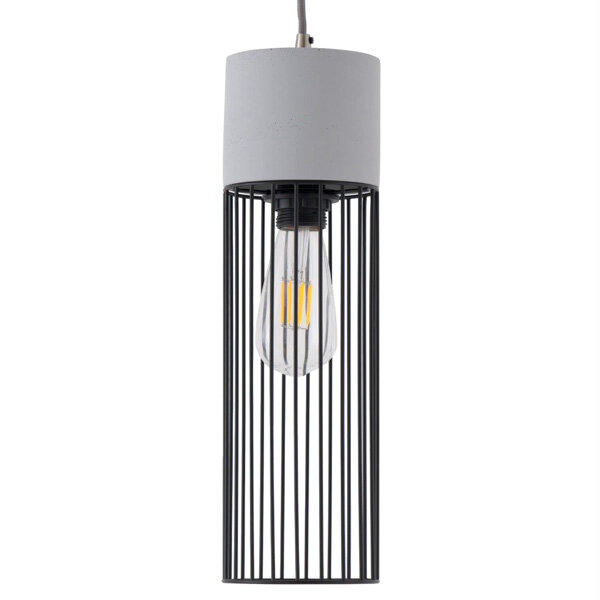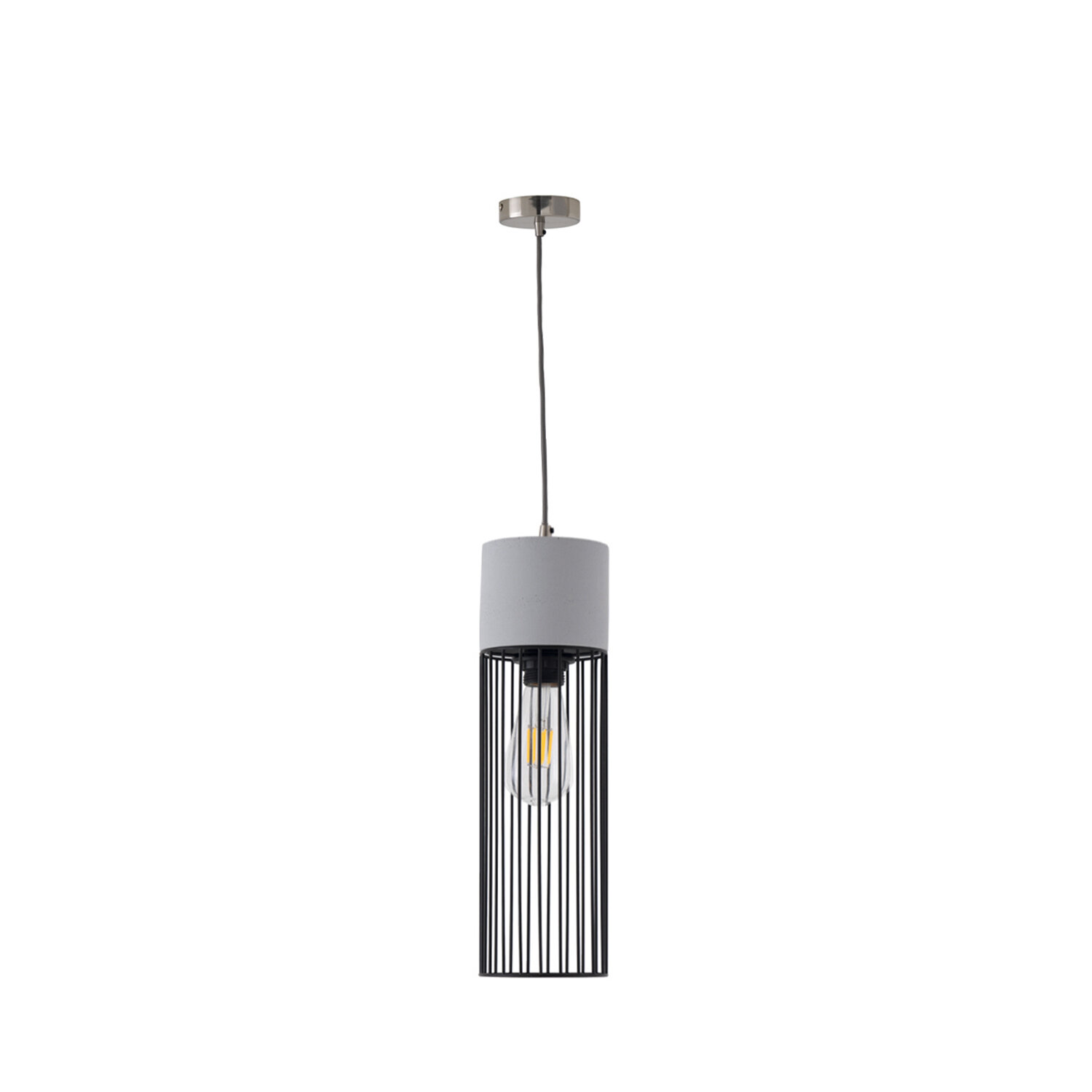 La lámpara de techo BIRILA presenta un estilo industrial y moderno. La pantalla de cemento le da un aspecto sólido y contemporáneo, mientras que la jaula de metal negro le da un toque de sofisticación. Además, el cable y la pletina redonda plateada le confiere un aire elegante. Tipo bombilla: 220/240 E27. Potencia máxima: 40W (bombilla no suministrada).
