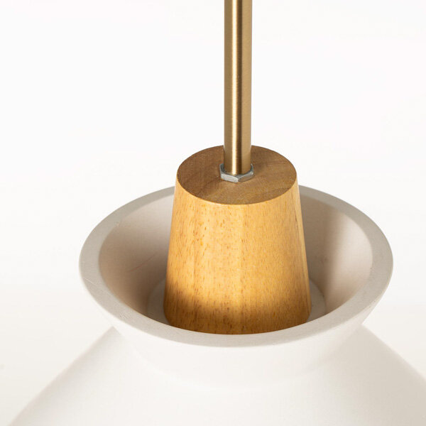 Detalles: Características: Medida pantalla: ø24 x 17 cm Medida pletina techo: ø10 x 2,5 cm Medida cable: 100 cm Peso producto: 2,70 kg Advertencia tolerancia: +/- 1 cm | MANTENIMIENTO: Recomendaciones: No colocar cerca de fuentes de calor o luz solar. Es recomendable quitar el polvo de los tapizados. Los elementos afilados o metálicos pueden rayar la superficie o producir desgarros. Uso y mantenimiento: Limpiar con paño ligeramente humedecido en agua y jabón neutro con movimientos en círculo. Frotar suavemente. Secar con paño seco. No utilizar productos abrasivos o químicos (lejías, acetonas, disolventes, etc.). Se puede utilizar ligeramente agua y jabón neutro para superficie | CARACTERÍSTICAS: Estructura: CEMENTO/MADERA Tipo bombilla: 220/240 E27 MAX:40W (NO INCLUIDA) Código del producto: 00LP104502 Las imágenes y/o colores de los productos pueden variar ligeramente por motivos de calibrado de pantalla, luz ambiente de la fotografía, ángulo de la misma, remesa producción madera, textil, etc. | PAQUETES: Nº paquetes: 1 Artículos por paquetes: 1 Dimensión paquete: 30 x 30 x 20 cm Peso paquete: 3 kg Manipulación: 1 persona
