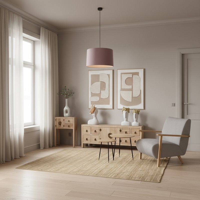 Lampara Techo Metal Pantallaterciopelo Rosa y 1Xe27 y Max.40 y Cable:100Cm