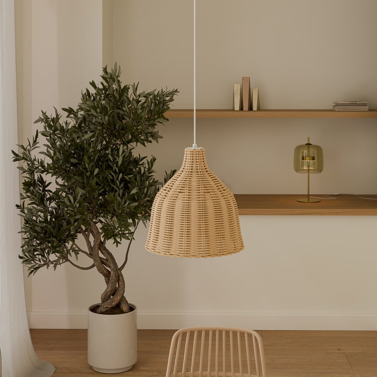 La lámpara de techo TEBA combina el encanto natural del ratán con el metal, creando una pieza ligera y decorativa que ilumina con calidez. Su diseño equilibrado se realza con el detalle en blanco del cable y la pletina, aportando frescura y un contraste suave que destaca sin romper la armonía. Perfecta para comedores, cocinas o dormitorios de estilo boho, mediterráneo o nórdico, la TEBA aporta textura, luz acogedora y un toque artesanal con acabado contemporáneo. Tipo bombilla: 220/240 E27. Potencia máxima: 40W (bombilla no suministrada).