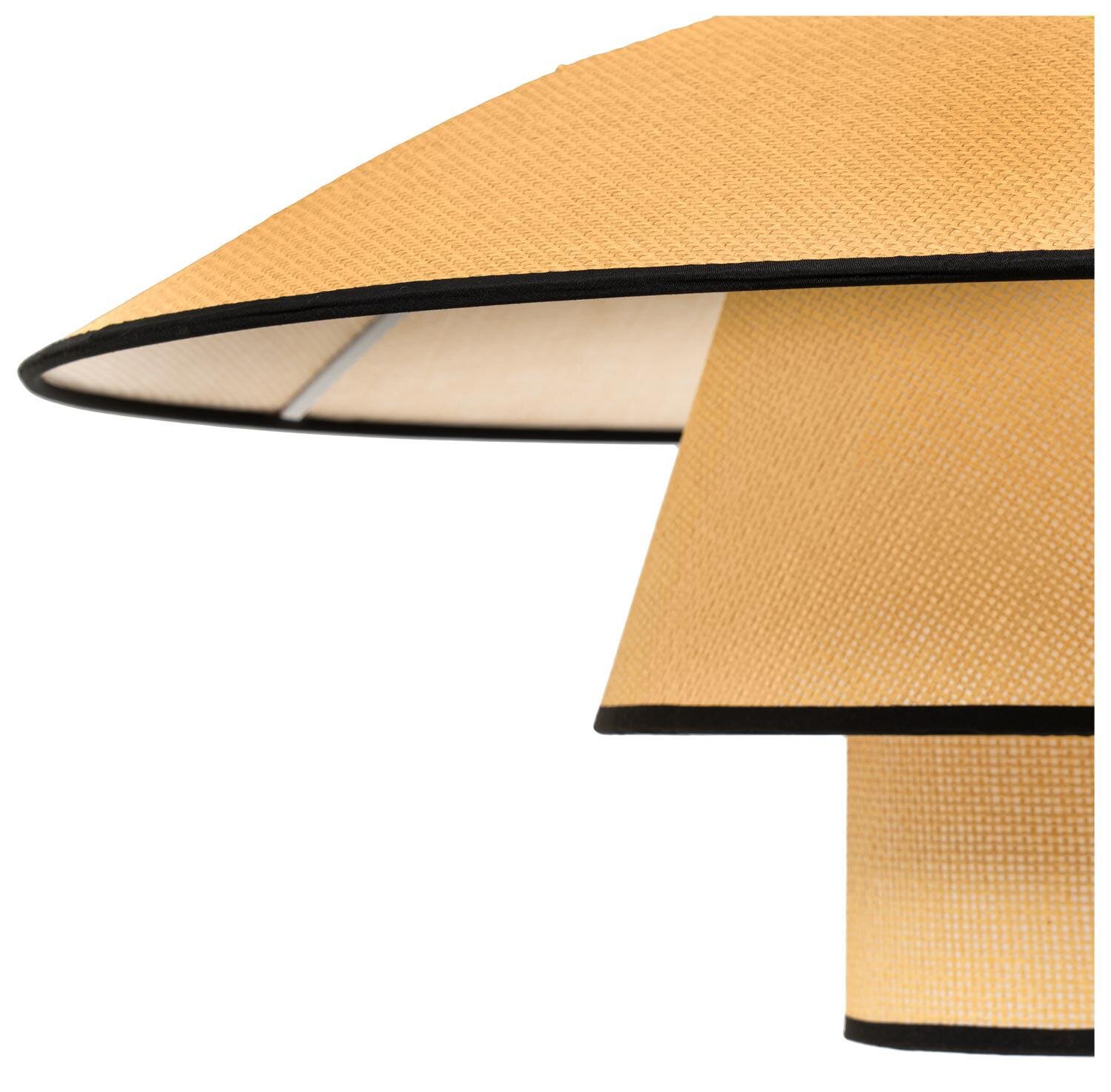 La lámpara de techo TURÓN destaca por su silueta envolvente y dinámica, con una pantalla de rejilla de ratánque va de una base ancha a una parte superior más estrecha, creando una forma estilizada y orgánica que aporta movimiento visual. Los detalles en tela negra enmarcan el diseño y añaden un contraste sutil que realza su forma. Ideal para comedores, salones o dormitorios de estilo boho, mediterráneo o natural, la TURÓN combina textura, luz cálida y una estética cuidada que transforma cualquier ambiente. Tipo bombilla: 220/240 E27. Potencia máxima: 40W (bombilla no suministrada).