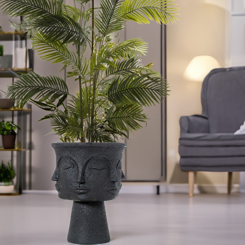 Macetero 3 Caras Resina Negro Granulado Hueco:ø18 y