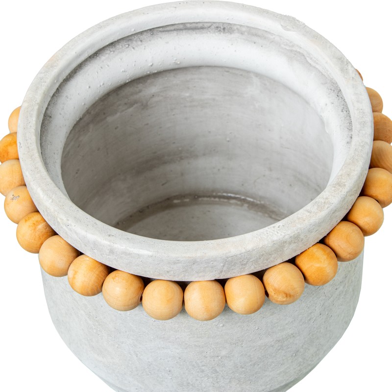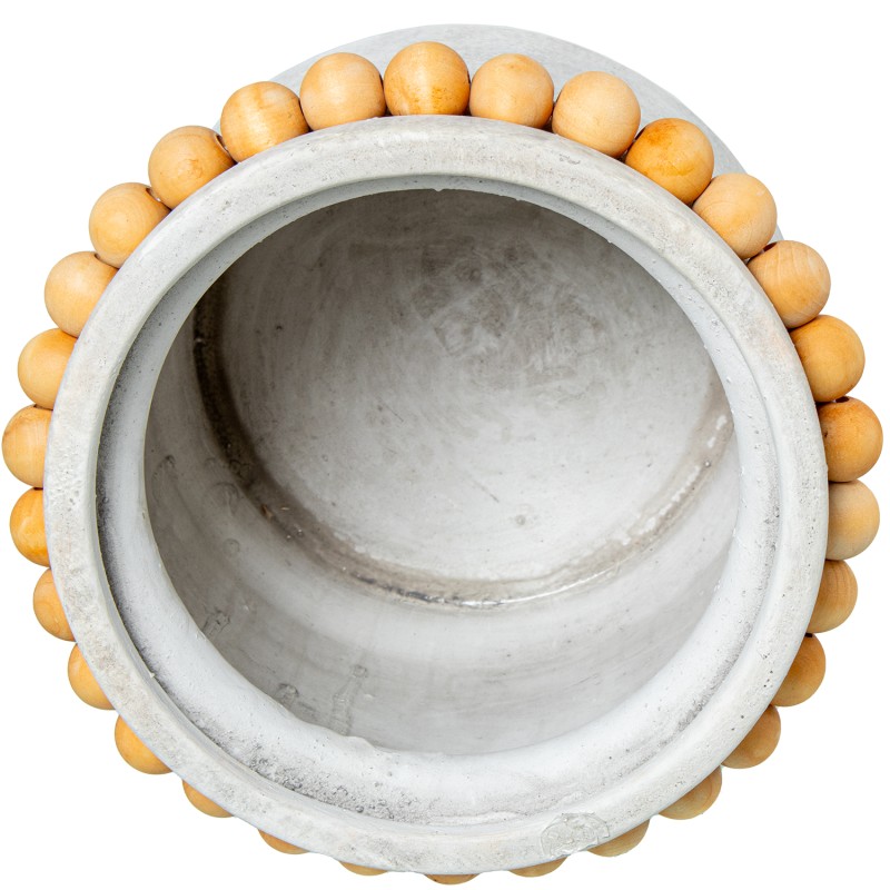 Macetero Cerámica Ø24Cm Gris C y Bolitas Madera