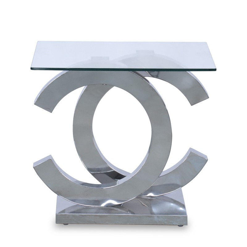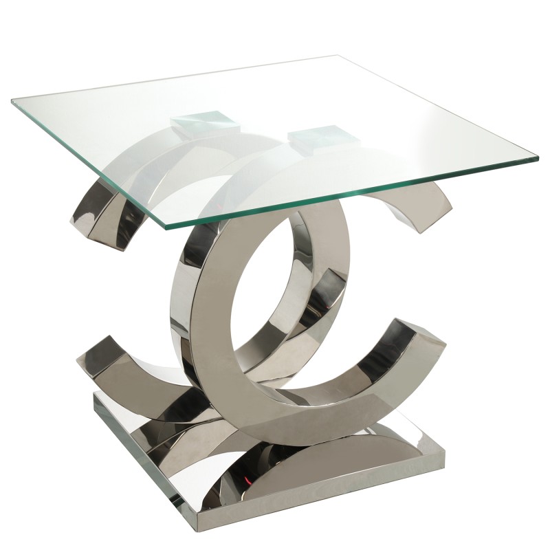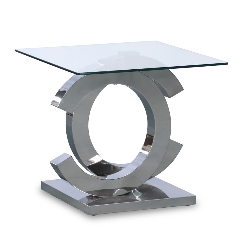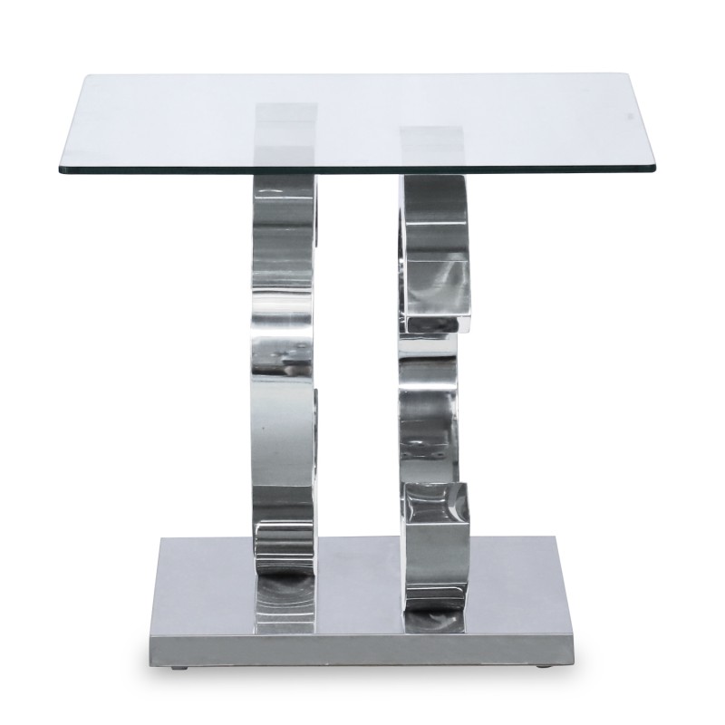 Mesa Auxiliar Cristal Acero Brillo y Cristal Temp:8Mm