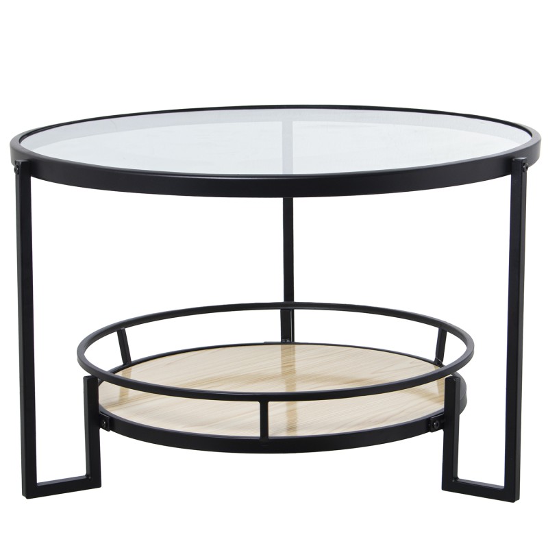 Detalles: Mesa Auxiliar Metal Negro y Cristal Transp. y Balda Madera | Categoría: Mueble Auxiliar | Ref.: 71922