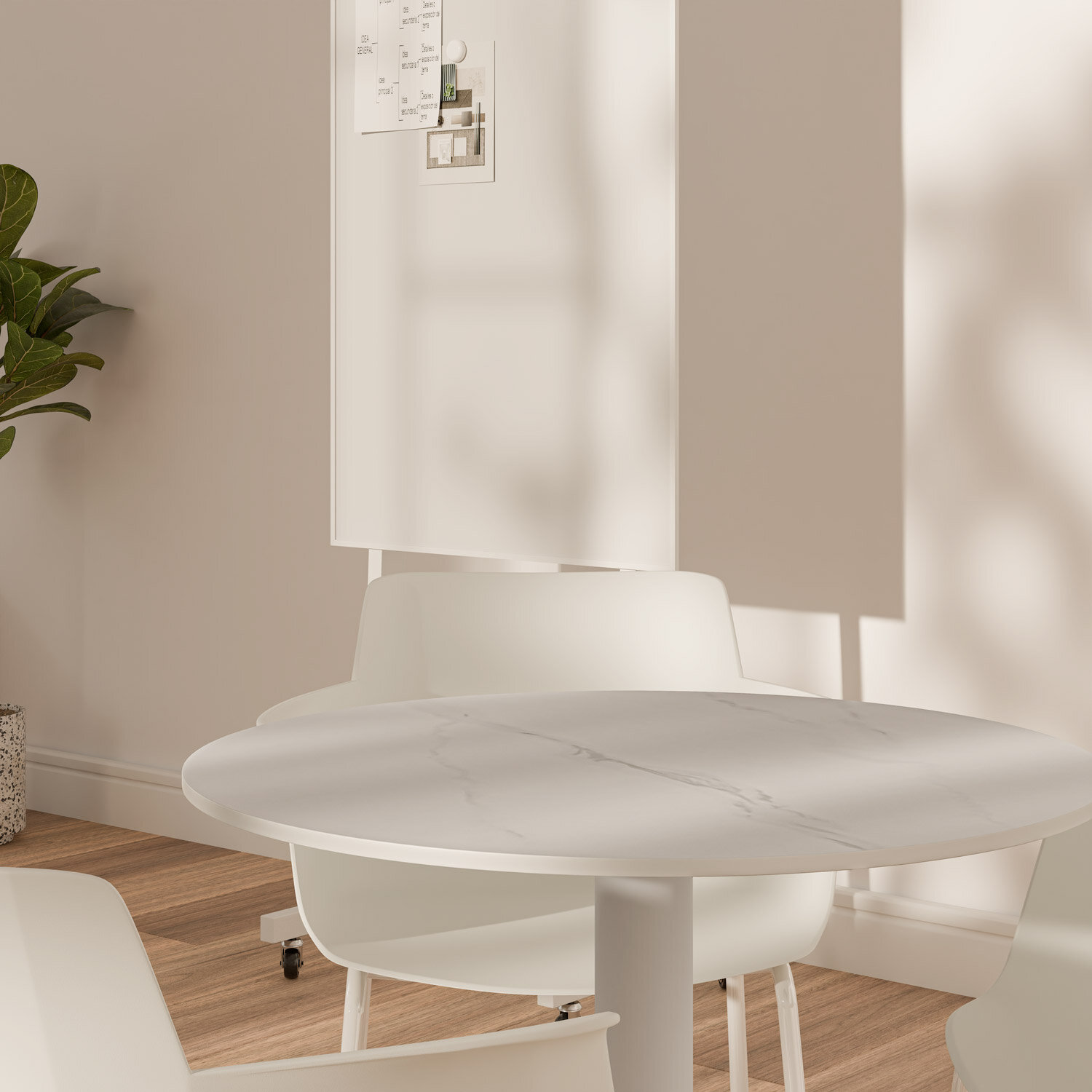 Diseñada para adaptarse con elegancia a comedores, terrazas cubiertas y cafeterías, la mesa LYA de 75 cm de altura combina funcionalidad y estilo contemporáneo. Su tapa redonda de porcelánico , de 70 cm de diámetro y 12 mm de grosor, está disponible en tres tonos neutros —blanco, negro y gris— que realzan su carácter sobrio y atemporal. La base metálica, en acabado blanco o negro, aporta estabilidad y un diseño limpio que se integra fácilmente en ambientes modernos. Ideal para desayunos, comidas informales o espacios de reunión, esta versión de LYA es perfecta para crear rincones cómodos y estéticamente cuidados tanto en el hogar como en espacios contract.