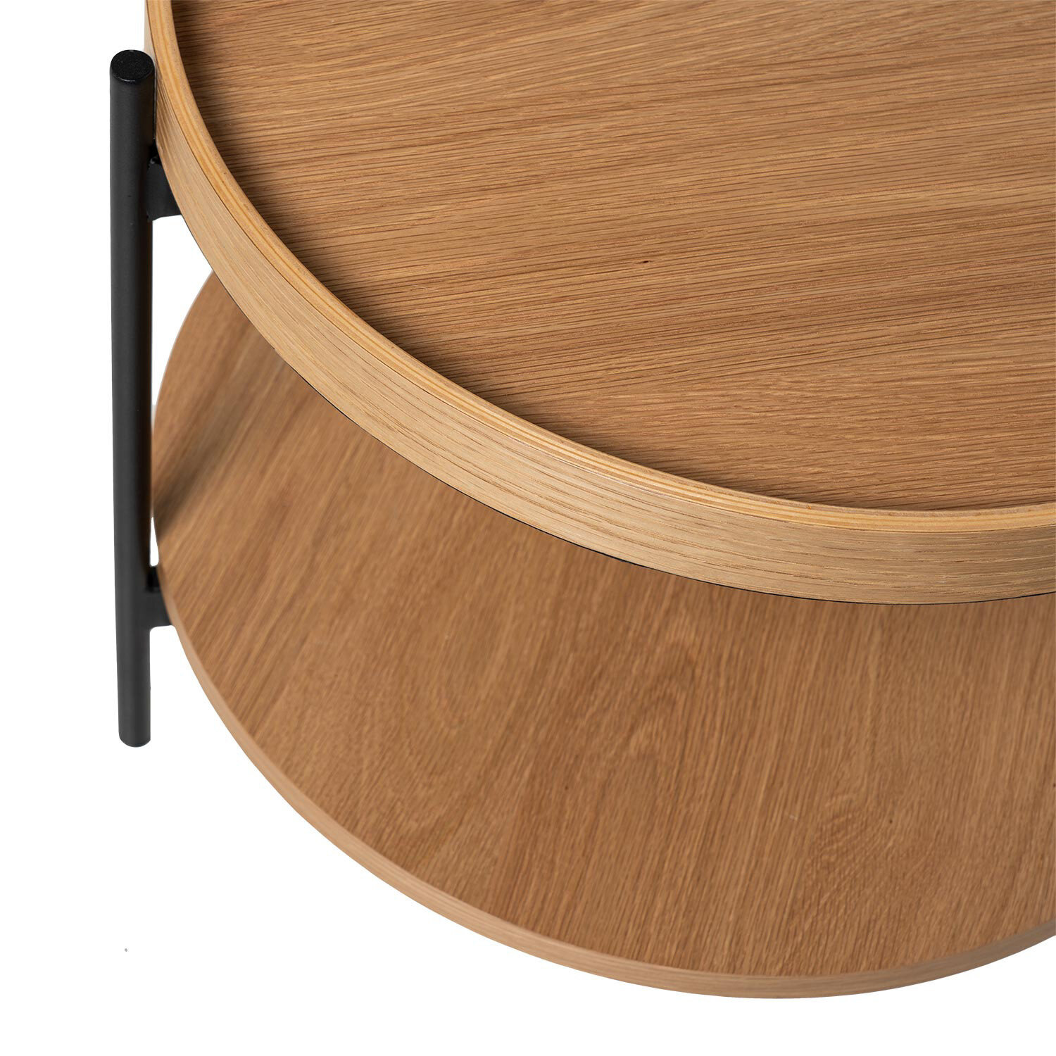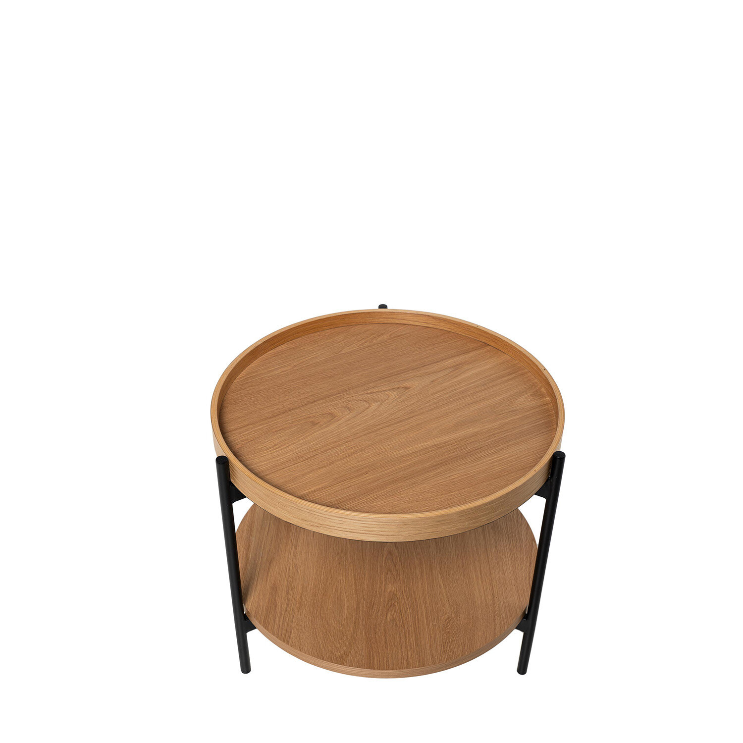 La mesa de centro ADRIAN es una pieza sofisticada que combina minimalismo y modernidad en un diseño elegante. Su tablero circular, elaborado en MDF con un fino acabado en chapa de roble, aporta una estética refinada y atemporal, perfecta para cualquier espacio contemporáneo. Sus patas metálicas en color negro, garantizan estabilidad y solidez, además de añadir un sutil aire industrial que se adapta a múltiples estilos decorativos. Ya sea en un ambiente moderno, nórdico o incluso ecléctico, la mesa ADRIAN destaca por su versatilidad y capacidad para integrarse armoniosamente en diferentes estilos de decoración. En la foto están la mesa ADRIÁN y la mesa DYLAN, se venden por separado.