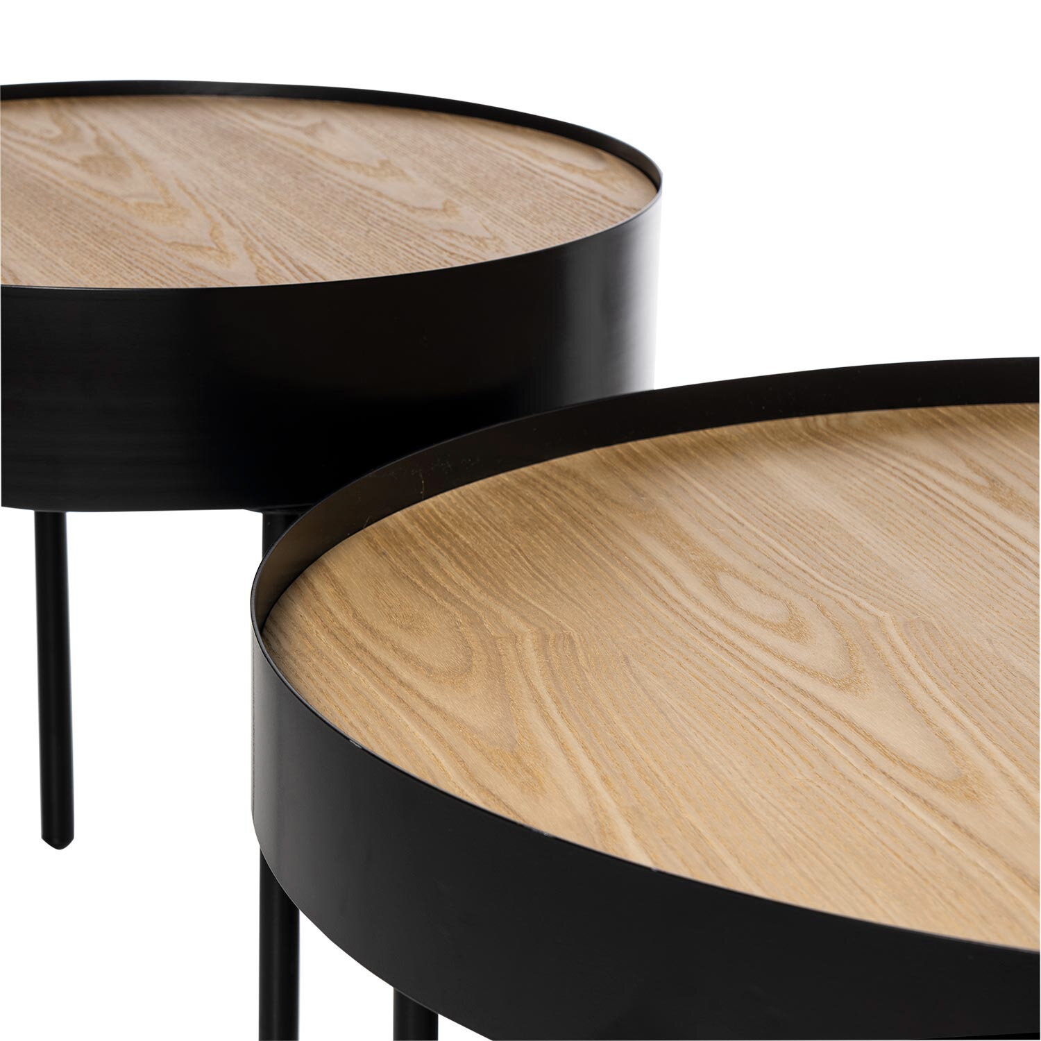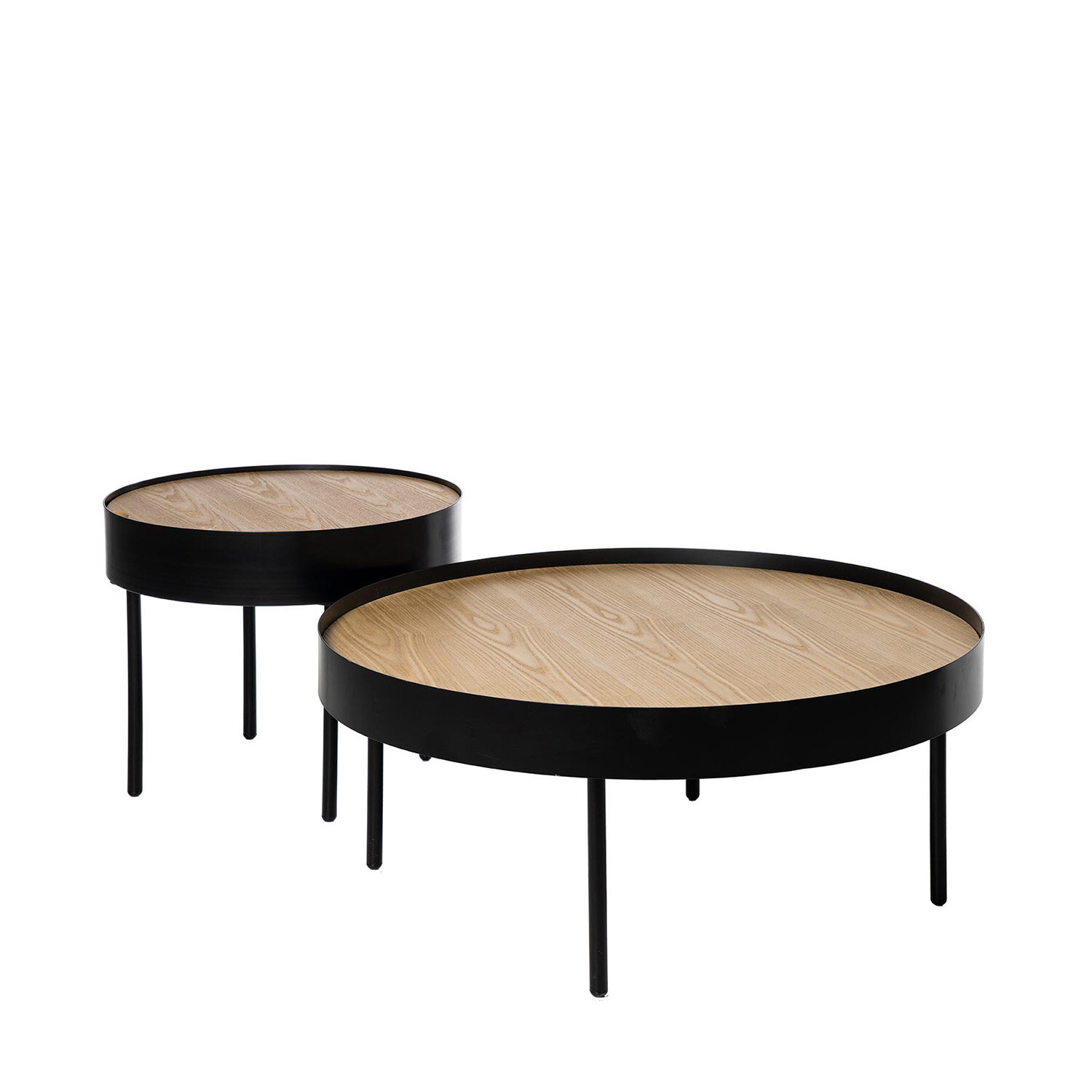 La mesa de centro BILL es una fusión impecable de estilo natural e industrial, combinando la tapa de madera en acabado roble con unas patas de metal negro que aportan carácter y estabilidad. Este diseño versátil es ideal para salones contemporáneos o espacios de estilo loft, aportando un toque de calidez sin perder ese aire urbano y sofisticado. En la foto están la mesa de centro BILL y la mesa de centro ANDREW, se venden por separado.