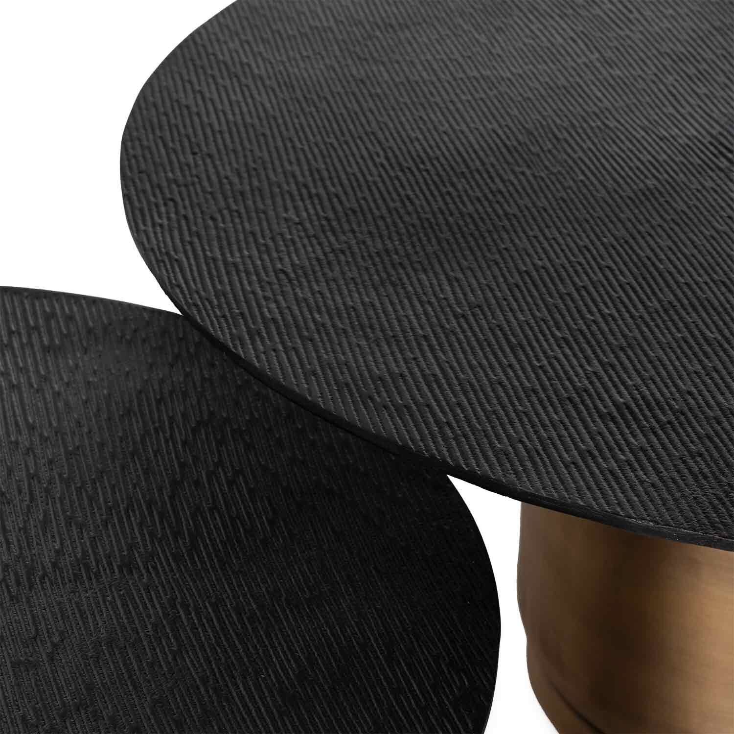 La mesa de centro DURAI es una oda al diseño audaz y contemporáneo. Su tapa redonda de aluminio, con un acabado cepillado que aporta textura y sofisticación, refleja la luz de manera sutil, generando un juego visual elegante y moderno. Sostenida por una base de hierro en acabado negro, la estructura aporta estabilidad y carácter, equilibrando a la perfección lo industrial con lo refinado. Su diseño la hace ideal para ambientes urbanos, lofts de inspiración minimalista o salones con un enfoque contemporáneo que apuesten por la combinación de materiales metálicos y formas puras. Cada mesa puede presentar ligeras variaciones o imperfecciones, propias de su elaboración artesanal, lo que convierte a cada mesa en una pieza exclusiva, con identidad propia. En la foto están la mesa DURAI 55 y la mesa DURAI 74, se venden por separado.