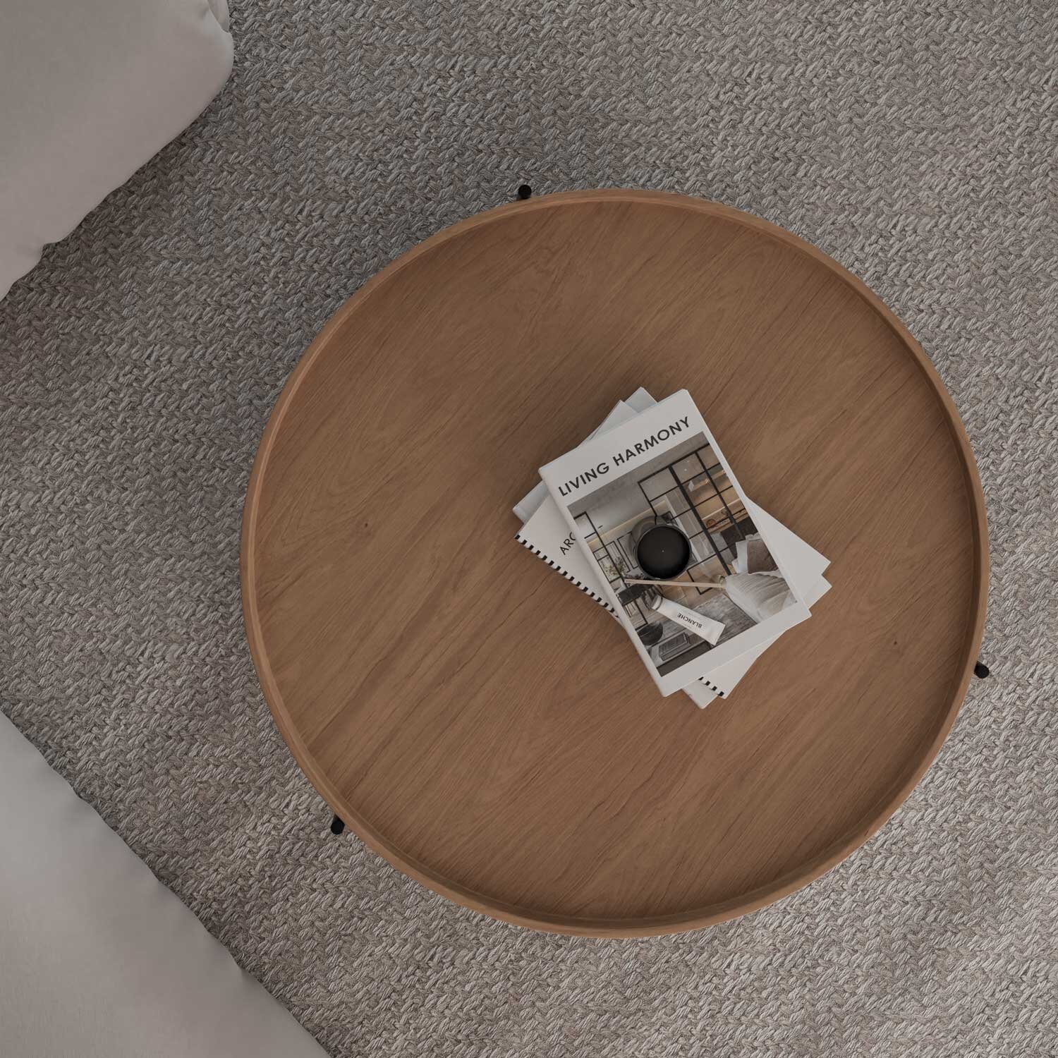 La mesa de centro DYLAN se distingue por su diseño contemporáneo en un elegante color madera con su tapa de chapa de roble, que aporta un toque natural y elegante. Su estructura se combina con las patas metálicas en color negro que garantizan estabilidad y resistencia. Gracias a su estética sobria y moderna, esta mesa es perfecta para interiores de estilo minimalista, industrial o contemporáneo, convirtiéndose en un elemento versátil y atemporal dentro de la decoración. En la foto están la mesa DYLAN y la mesa ADRIÁN, se venden por separado.