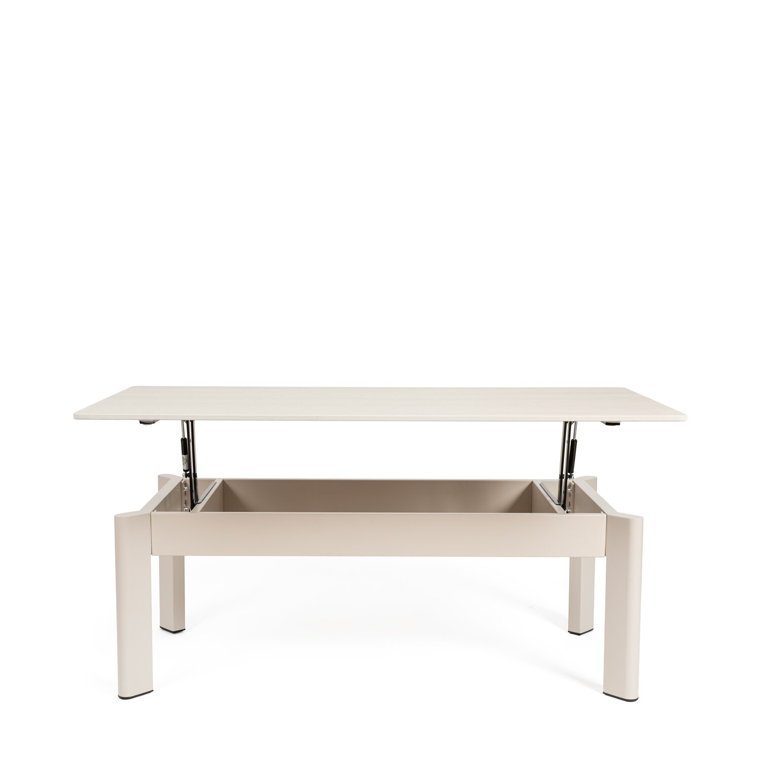 La mesa de centro elevable ROLAND combina funcionalidad y estilo con una estética contemporánea que se adapta con facilidad a distintos tipos de interior. Su tapa de porcelánico de 12 mm está disponible en cuatro elegantes acabados —travertino, blanco, negro y gris—, permitiendo múltiples combinaciones decorativas. Cada opción se complementa con una estructura metálica robusta: en color negro para la mayoría de versiones, o en beige para el modelo travertino, aportando un toque más cálido y natural. Su diseño inteligente permite elevar la tapa de 46 cm hasta los 69,6 cm de altura, ampliando también el fondo de 60 a 88 cm. Este mecanismo, discreto y práctico, integra además un sistema de cierre soft-closing que asegura un descenso suave y silencioso de la tapa, reforzando la sensación de confort y calidad. Todo ello convierte a la ROLAND en una mesa ideal para quienes buscan comodidad sin renunciar al diseño: perfecta para comer, trabajar o disfrutar de momentos de ocio desde el sofá. C