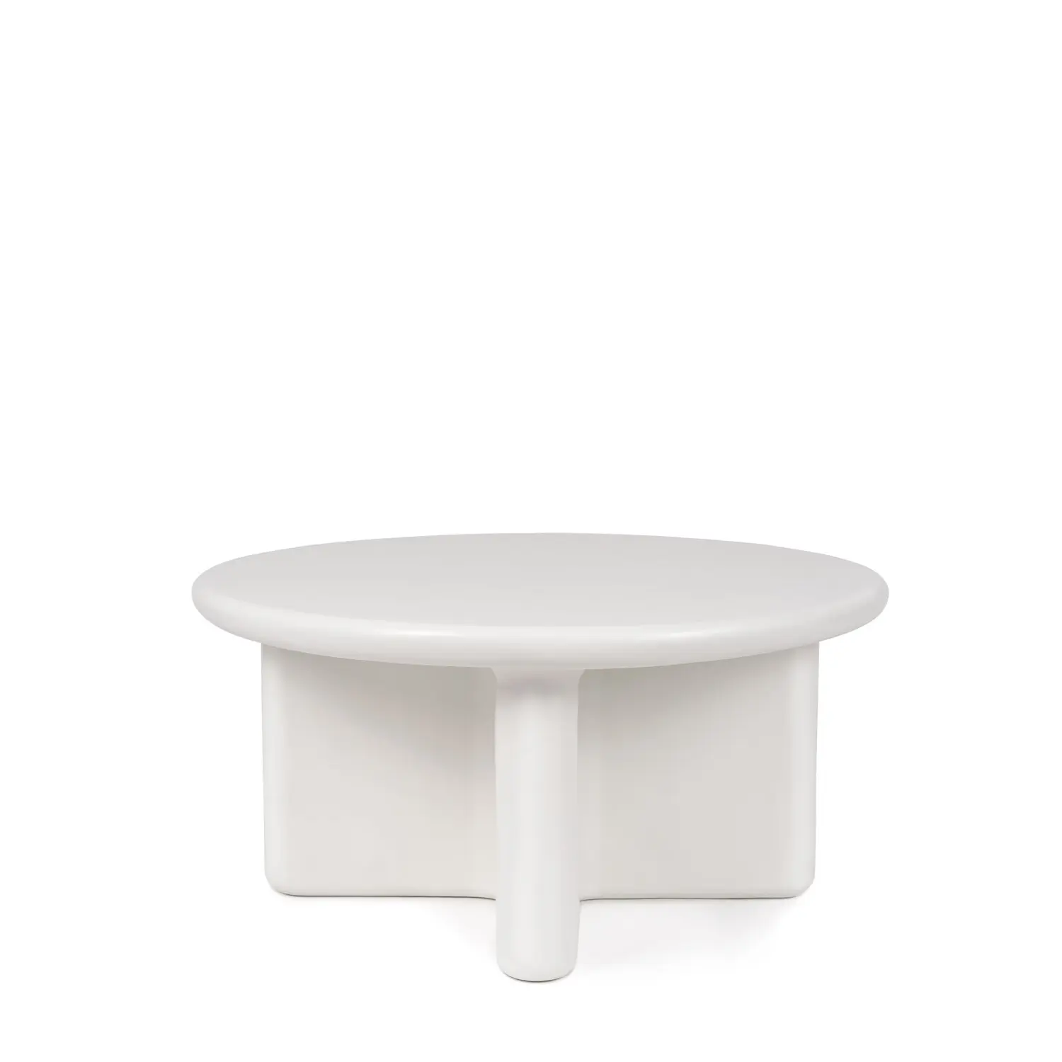 La mesa de centro FLOYD ø80 cm, fabricada en resina, destaca por su diseño escultórico de líneas suaves y forma redondeada, que aporta una estética moderna y equilibrada. Su acabado blanco realza la luminosidad del espacio y refuerza su carácter contemporáneo. Es una pieza ideal para salones modernos, minimalistas o de inspiración mediterránea, donde actúa como elemento central sin sobrecargar el ambiente. Resistente y fácil de mantener, FLOYD combina funcionalidad y diseño en una mesa versátil pensada para el uso diario. En la foto están la mesa de centro FLOYD ø80 cm y mesa auxiliar FLOYD ø50 cm, se venden por separado.
