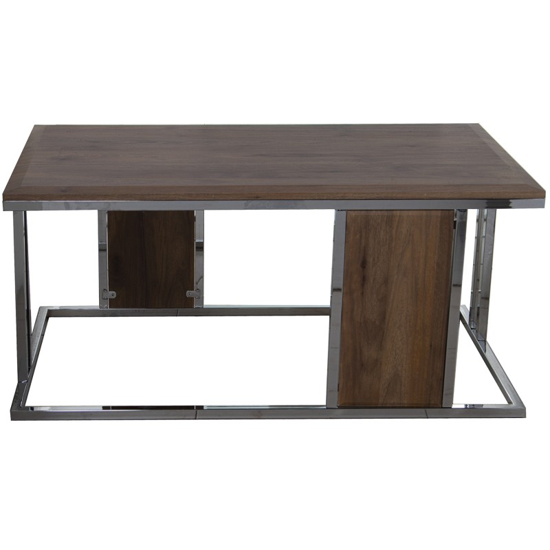 Detalles: Mesa Centro Madera Metal Cromado y Tablero Biselado y Color Nogal | Categoría: Mueble Auxiliar | Ref.: 72230