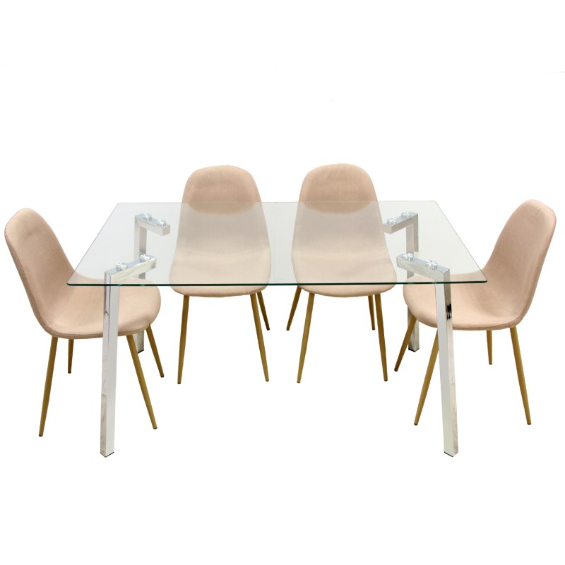 Mesa Comedor Metal y Cristal y Patas: Acero Inox. -Cristal Temp:8Mm
