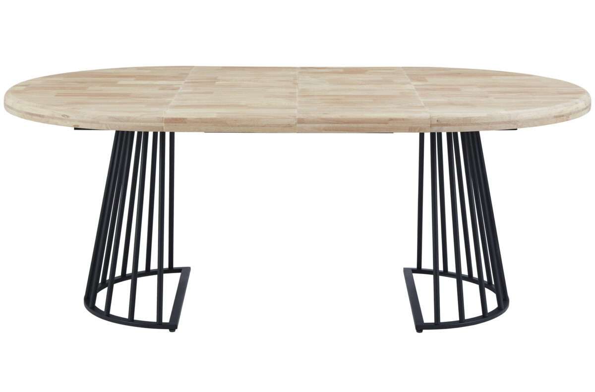 Tapa y extensibles en madera de roble. | 2 extensibles individuales de 40 cm ancho. | Extensible a 160 o 200 cm. | Estructura metálica en color negro. | Medidas: 120 – 160 – 200 x 120 x 76 cm.