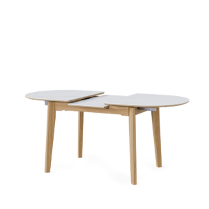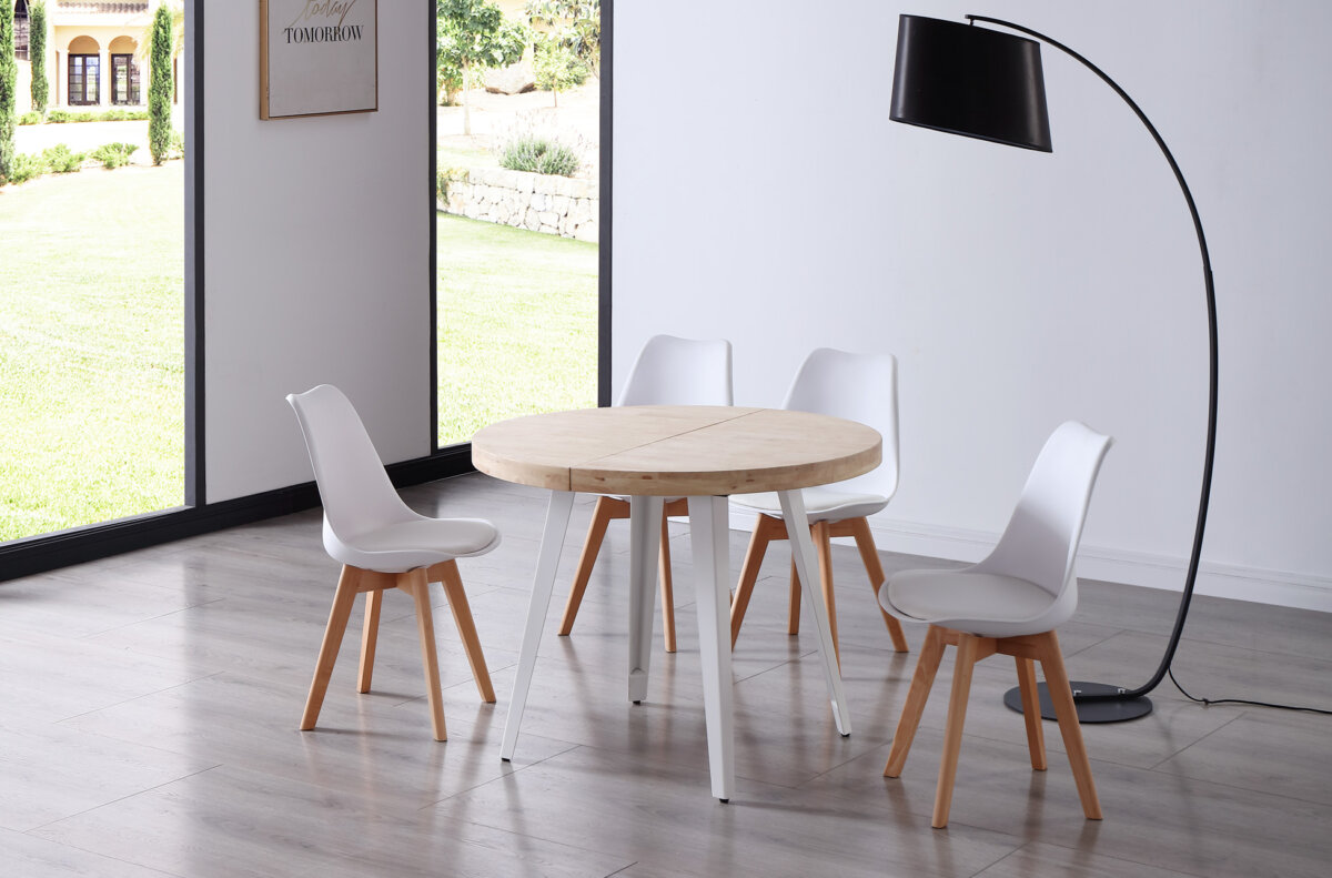 MESA COMEDOR REDONDA EXTENSIBLE BERG 100 – 140 – 180 CM ROBLE NORDISH / BLANCO.