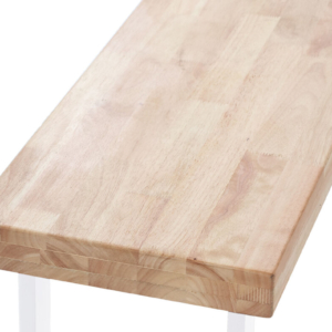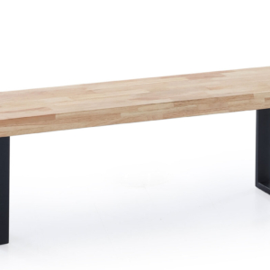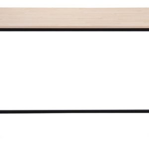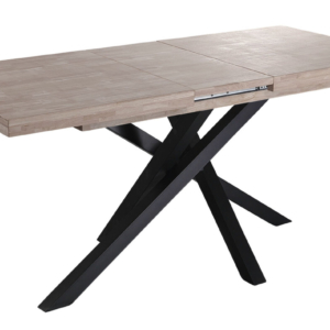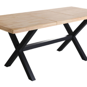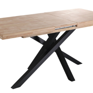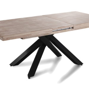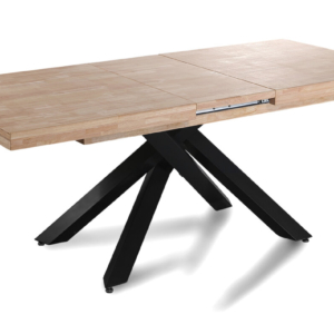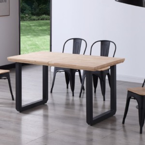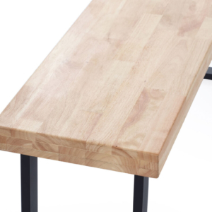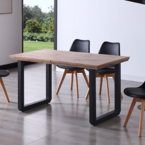 Tapa en madera de roble. | Grueso exterior tapa 54 mm. | Patas metálicas color negro. | Medidas: 100 x 100 x 76 cm.