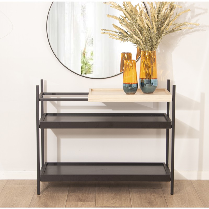 Detalles: Mesa de Entrada Metal Negro Madera Natural y Alt. Patas:10Cm | Categoría: Mueble Auxiliar | Ref.: 84901
