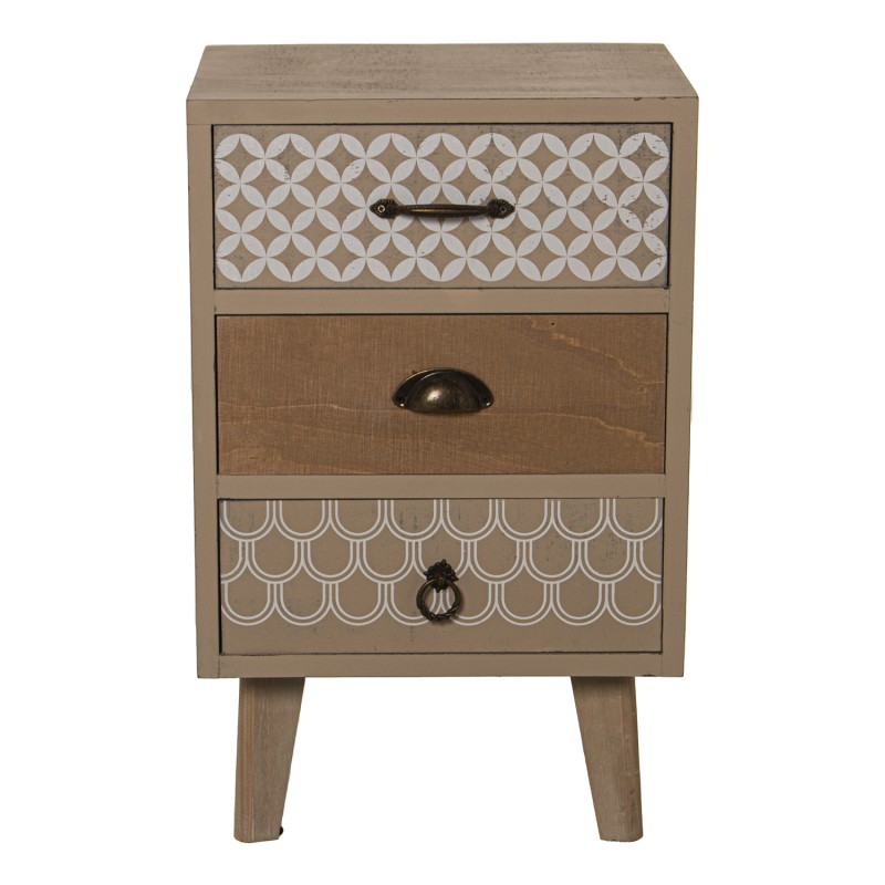 Detalles: Mesa de Noche Madera C y 3 Cajones y Abeto y Contrach. y Patas Pino | Categoría: Mueble Auxiliar | Ref.: 68040