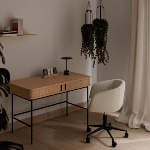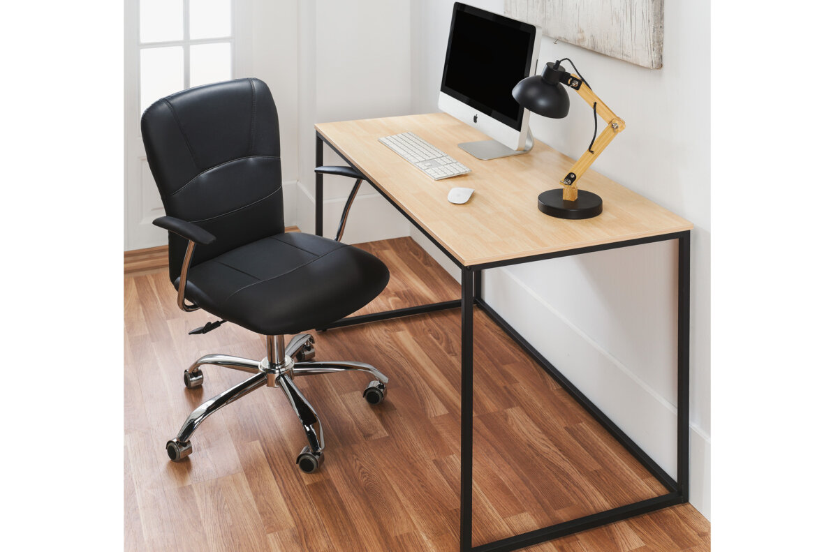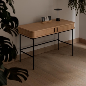 Mesa estudio modelo Mia. | Tapa estratificado color roble Nordish. | Patas metálicas color negro. | Medidas: 120 x 60 x 75 cm.