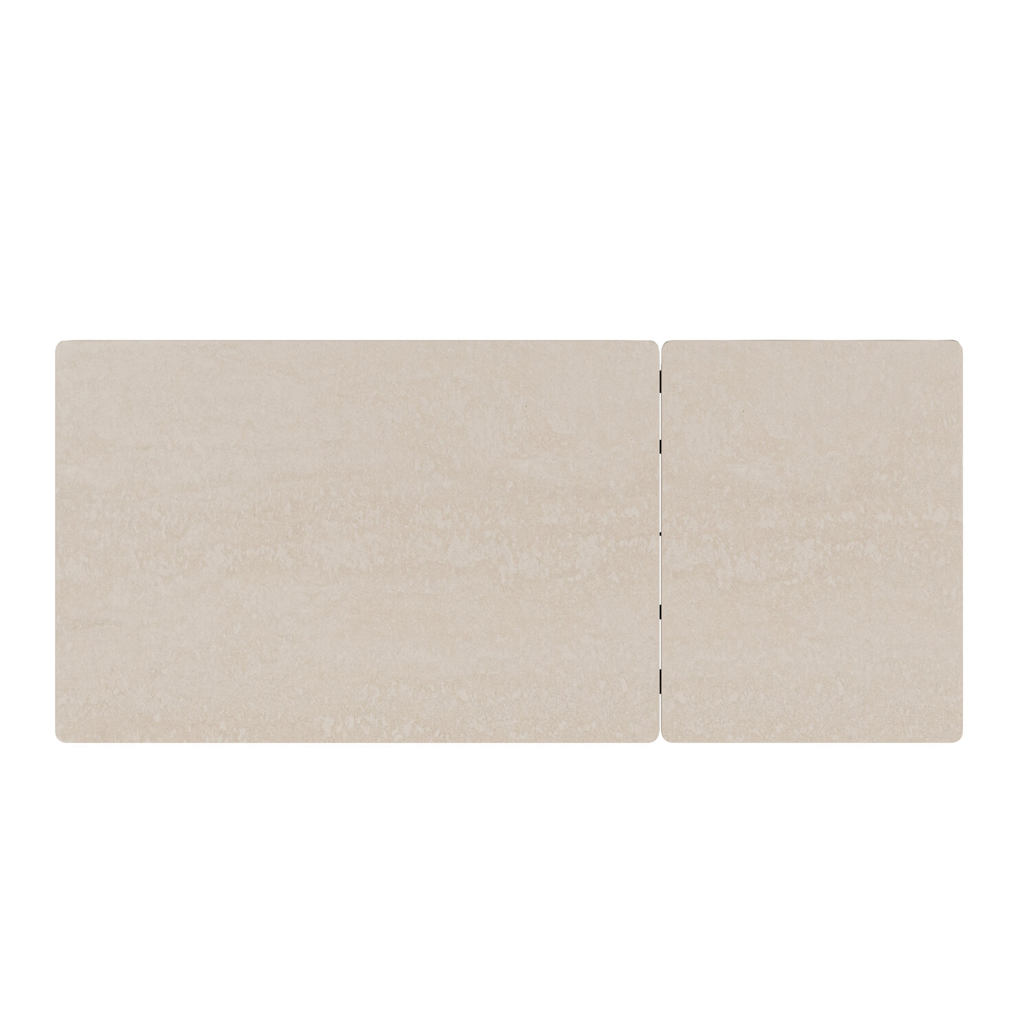 Con un diseño que equilibra estética contemporánea y funcionalidad, la mesa extensible CONSTANCE se convierte en el centro de todas las miradas. Su tapa de porcelánico de 1,2 cm de grosor ofrece una superficie resistente, elegante y fácil de mantener, con un acabado travertino beige que evoca la textura y el tono cálido de la piedra natural, ideal para ambientes sofisticados y modernos. La estructura robusta de hierro negro sostiene con firmeza el sobre, aportando un contraste visual que resalta sus líneas limpias y su carácter industrial refinado. Su diseño rectangular, compacto en su forma cerrada (140 cm), se transforma con agilidad gracias a su extensible lateral giratorio de 60 cm, alcanzando los 200 cm de largo para adaptarse a reuniones más amplias o comidas en familia. Esta mesa es perfecta para salones, comedores o cocinas con un enfoque actual, donde el equilibrio entre practicidad y diseño marca la diferencia. Su estilo elegante pero versátil la convierte en una pieza camale