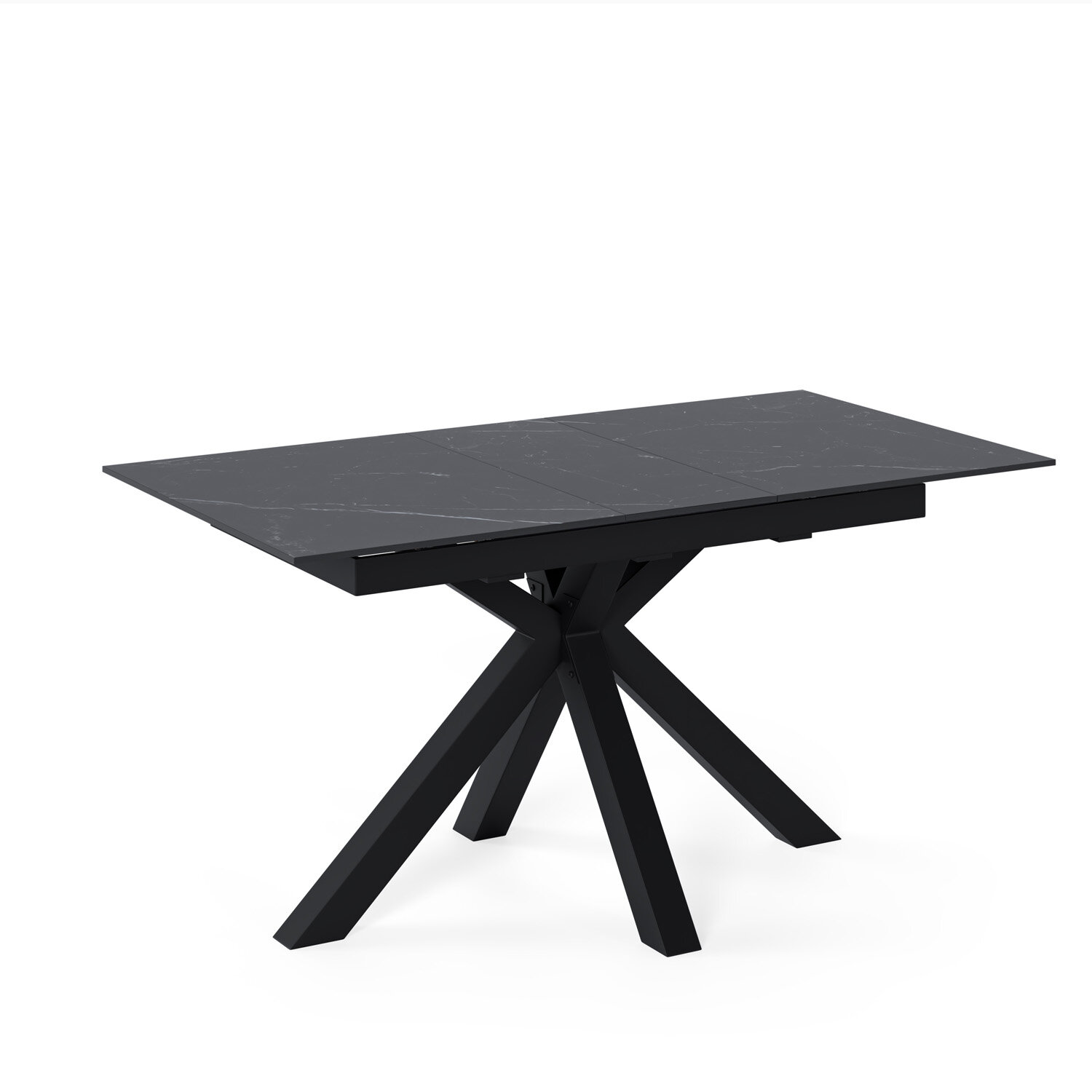 La mesa extensible LORI destaca por su diseño versátil, elegante y funcional, ideal para adaptarse a cualquier espacio con estilo y practicidad. Su superficie de porcelánico está disponible en tres tonalidades atemporales: blanco, negro y gris. Estas opciones, cuidadosamente seleccionadas, combinan a la perfección con las patas metálicas en color negro, logrando un contraste sofisticado que se integra armoniosamente en decoraciones modernas, minimalistas o contemporáneas. El diseño de la mesa LORI presenta una forma rectangular, práctica y fácil de encajar en diversos espacios, acompañada de patas en forma de ‘x’ que aportan diseño y estabilidad. Además, su sistema extensible permite ampliar la superficie en 30 cm, ofreciendo la flexibilidad necesaria para adaptarse a diferentes ocasiones, desde reuniones íntimas hasta encuentros más numerosos. Gracias a su estilo limpio y contemporáneo, la mesa LORI es una opción ideal para comedores, cocinas o salones que busquen un mobiliario funcio