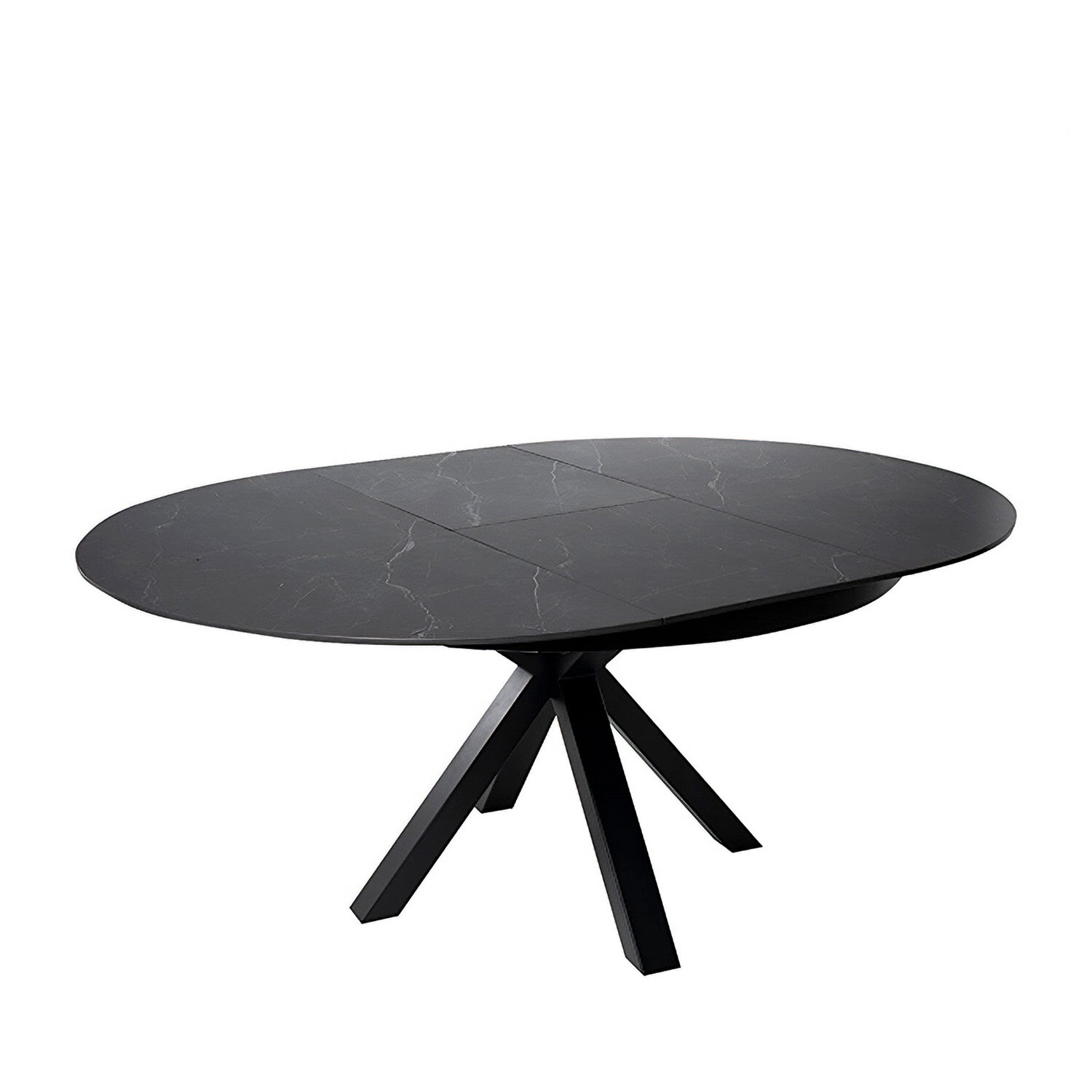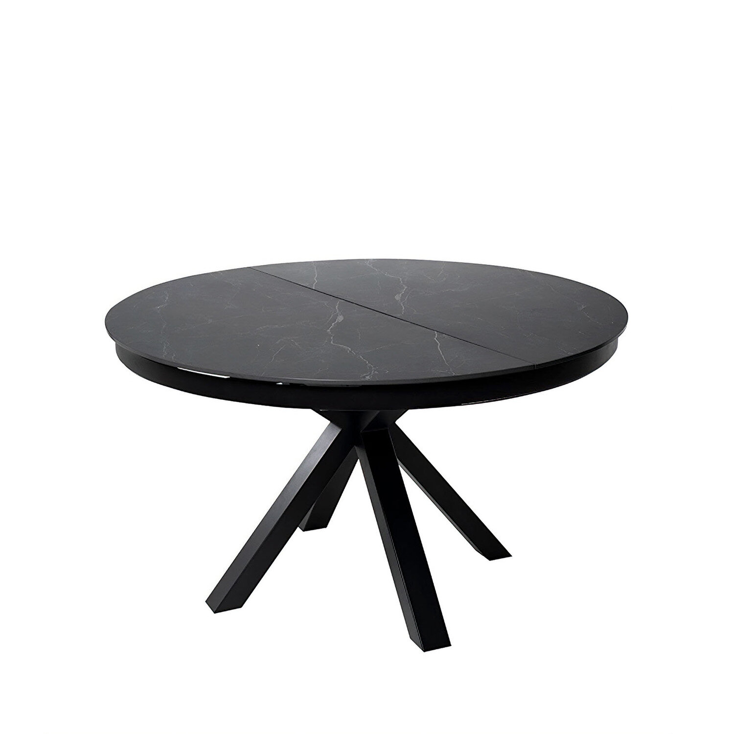 La mesa ZURI destaca por su diseño redondo y versátil. Su tapa de porcelánico de 10 mm, disponible en elegantes tonos blanco, gris o negro, ofrece una superficie resistente, sofisticada e higiénica, perfecta para el día a día. El sistema extensible de +50 cm, también en porcelánico, permite ampliar su capacidad sin romper la estética del conjunto. La pata central de metal en color negro aporta un aire moderno y asegura una base firme y estable, sin restar comodidad al espacio alrededor.