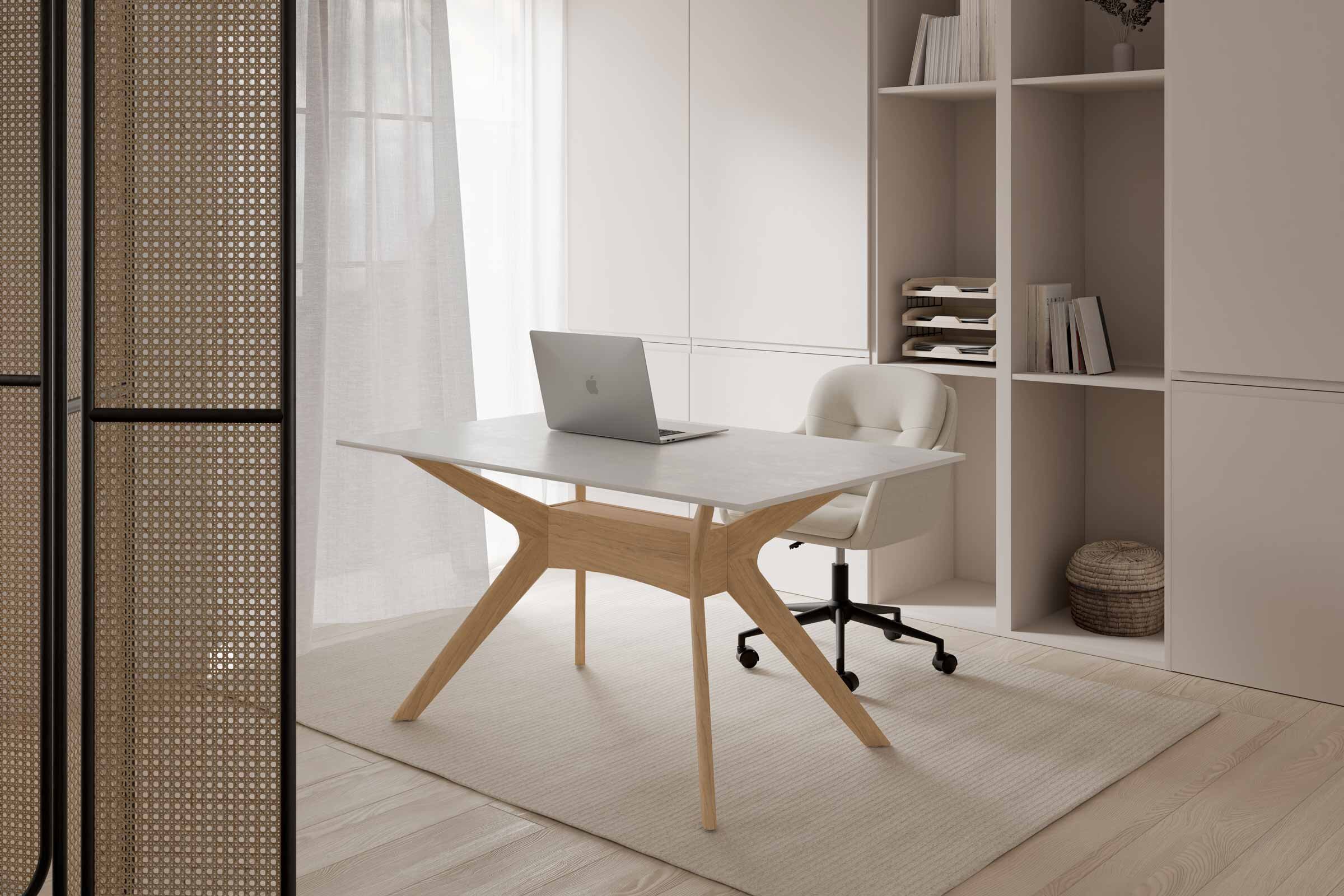 Con líneas depuradas y un equilibrio perfecto entre diseño contemporáneo y materiales nobles, la mesa ELOISE se presenta como una opción elegante y versátil para espacios modernos. Su tapa de porcelánico de 12 mm ofrece una superficie resistente y sofisticada, disponible en blanco, gris o negro, ideal para adaptarse a distintos estilos decorativos. Las patas de madera de hevea en acabado roble, aportan calidez y estabilidad, creando un contraste armónico con la textura suave y minimalista del porcelánico. Disponible en medidas de 140 y 160 cm, ELOISE encaja a la perfección tanto en comedores compactos como en ambientes más amplios donde se busca destacar con una pieza funcional y con carácter.
