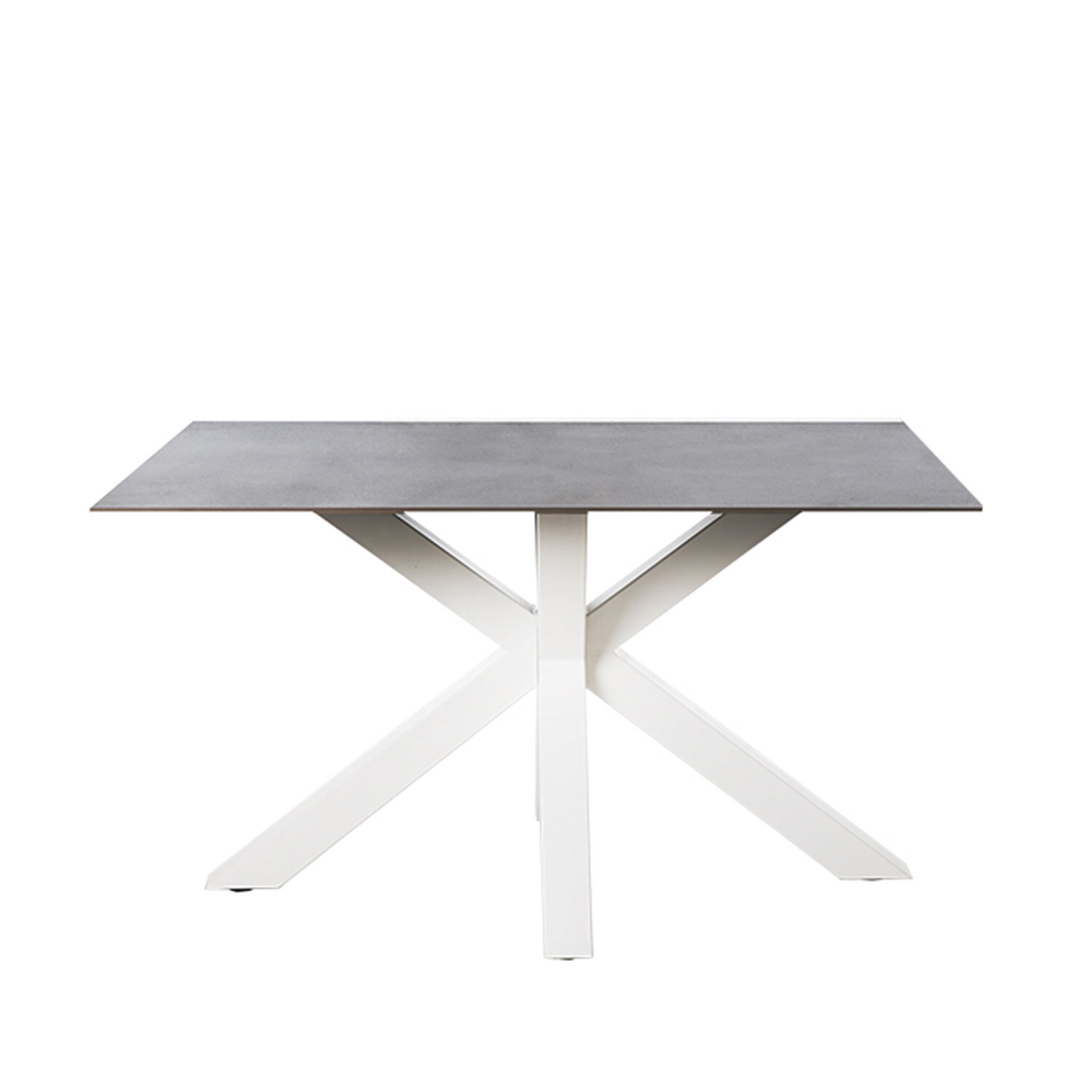 La mesa JOYCE es el artículo perfecto si lo que se busca es durabilidad, estética, funcionalidad y diseño. Esta mesa cuenta con una tapa porcelánica, resistente y fácil de limpiar, además de tener un acabado que imita el mármol, aportando un toque de sofisticación y lujo. La base está compuesta por patas gruesas de metal que se entrecruzan, creando una estructura artística y estable.
