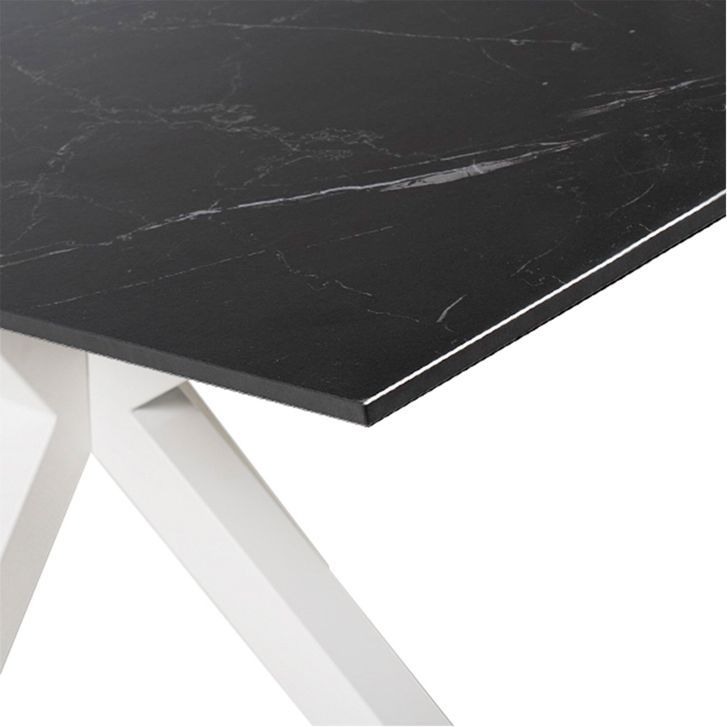 La mesa JOYCE es el artículo perfecto si lo que se busca es durabilidad, estética, funcionalidad y diseño. Esta mesa cuenta con una tapa porcelánica, resistente y fácil de limpiar, además de tener un acabado que imita el mármol, aportando un toque de sofisticación y lujo. La base está compuesta por patas gruesas de metal que se entrecruzan, creando una estructura artística y estable.