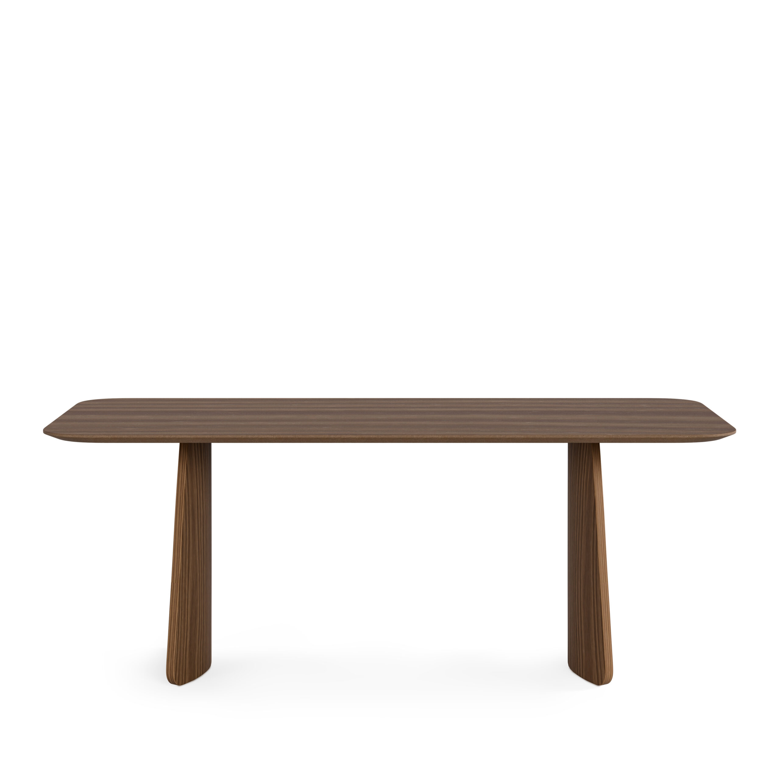 La mesa KIMBERLY irradia elegancia contemporánea gracias a su imponente diseño. Fabricada en chapa de madera acabado nogal, destaca por su tono cálido y natural que aporta una sensación de sofisticación sin estridencias, ideal para ambientes que buscan equilibrio entre funcionalidad y estilo. Con sus 200 cm de longitud, esta pieza se convierte en el punto de encuentro perfecto, ya sea en comedores familiares, espacios contract o zonas comunes con un enfoque moderno. Su estructura sorprende especialmente por las patas: un diseño escultórico que genera una base sólida y visualmente ligera al mismo tiempo. La tapa, con un grosor de 2,7 cm, refuerza la sensación de solidez y presencia, mientras que el acabado nogal se adapta con facilidad a estilos nórdicos, mid-century o incluso industriales con un toque cálido.