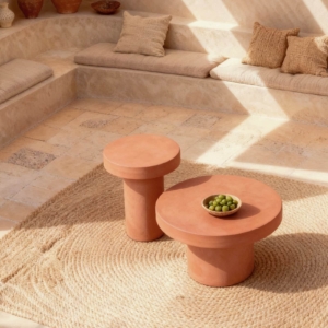La mesa de centro QADIM tiene un diseño único y elegante que combina con entornos modernos y minimalistas. Esta mesita está fabricada con madera de mango, y su acabado imitando a cemento le proporciona una estética sofisticada. Se trata de un acabado artesanal, hecho completamente a mano, cuya superficie presenta cierta rugosidad y porosidad, con imperfecciones (no se trata de una superficie lisa). El diseño de QADIM aporta un toque artístico allá donde esté, añadiendo una estética contemporánea a los espacios. En la foto están la mesa QADIM 40 y la mesa QADIM 70, se venden por separado.